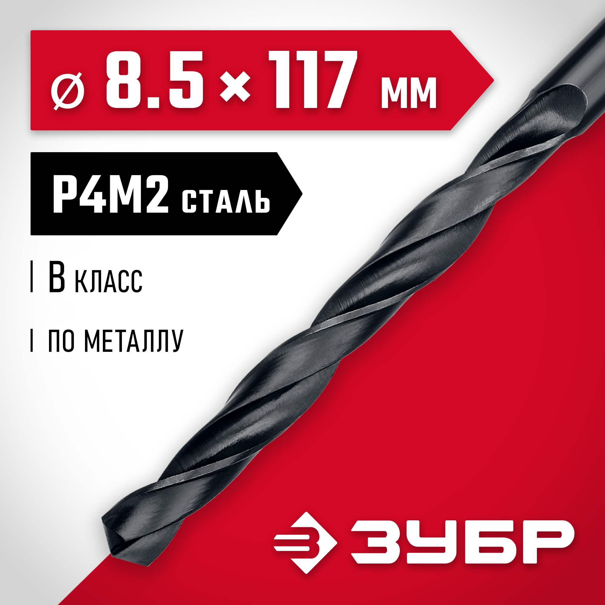 ЗУБР 8.5 х 117 мм, сталь Р4М2, класс В, сверло по металлу (29605-8.5)