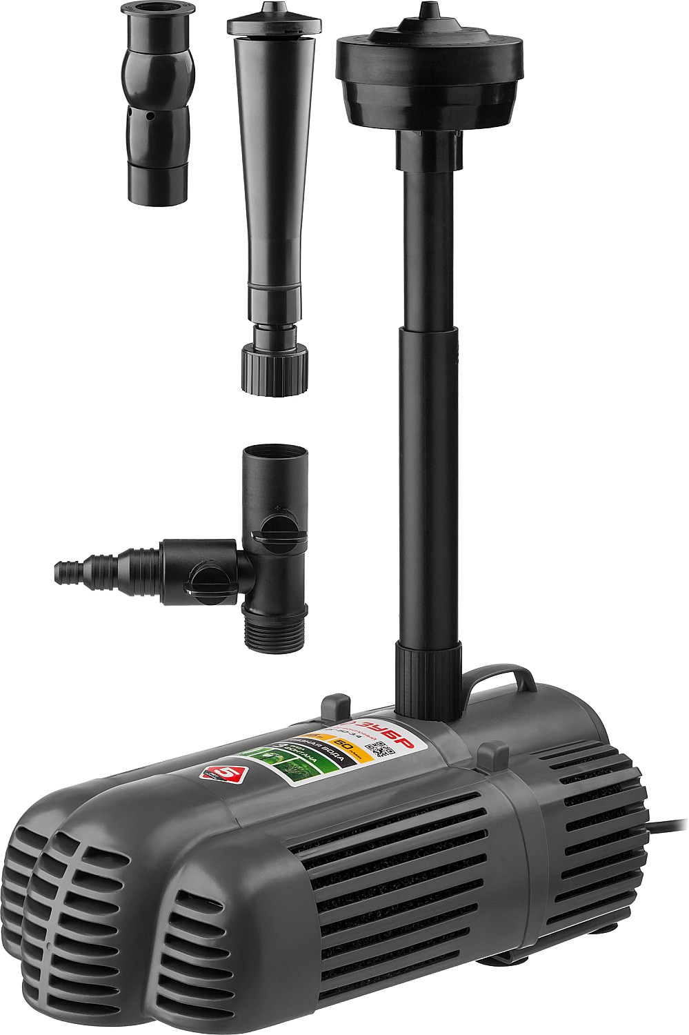 Простое средство для украшения сада. Обычный пруд с установкой насоса превращается в фонтан, причем, благодаря сменным насадкам, форма струи легко меняется между ″гейзером″, ″каскадом″ и ″колокольчиком″, а также может переключаться на водопад. Таким образом, одно изделие способно изменить Ваш пруд или сад, привнеся в него веселое и успокаивающее журчание воды, под которое так приятно отдыхать после рабочей недели