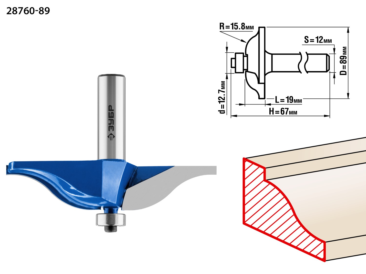 ЗУБР 89 x 19 мм, радиус 15.8 мм, фреза фигирейная №2, Профессионал (28760-89)