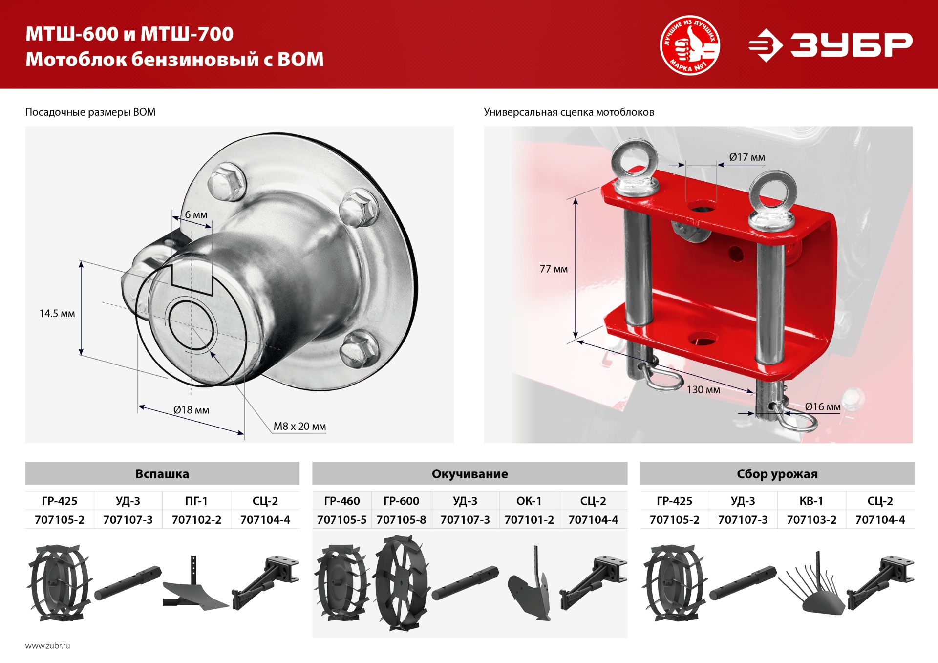 - Универсальная сцепка позволяет использовать различное навесное оборудование