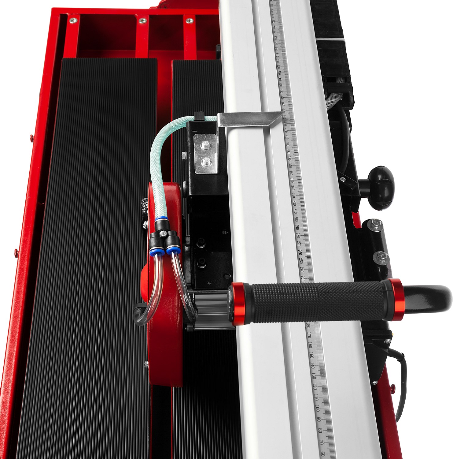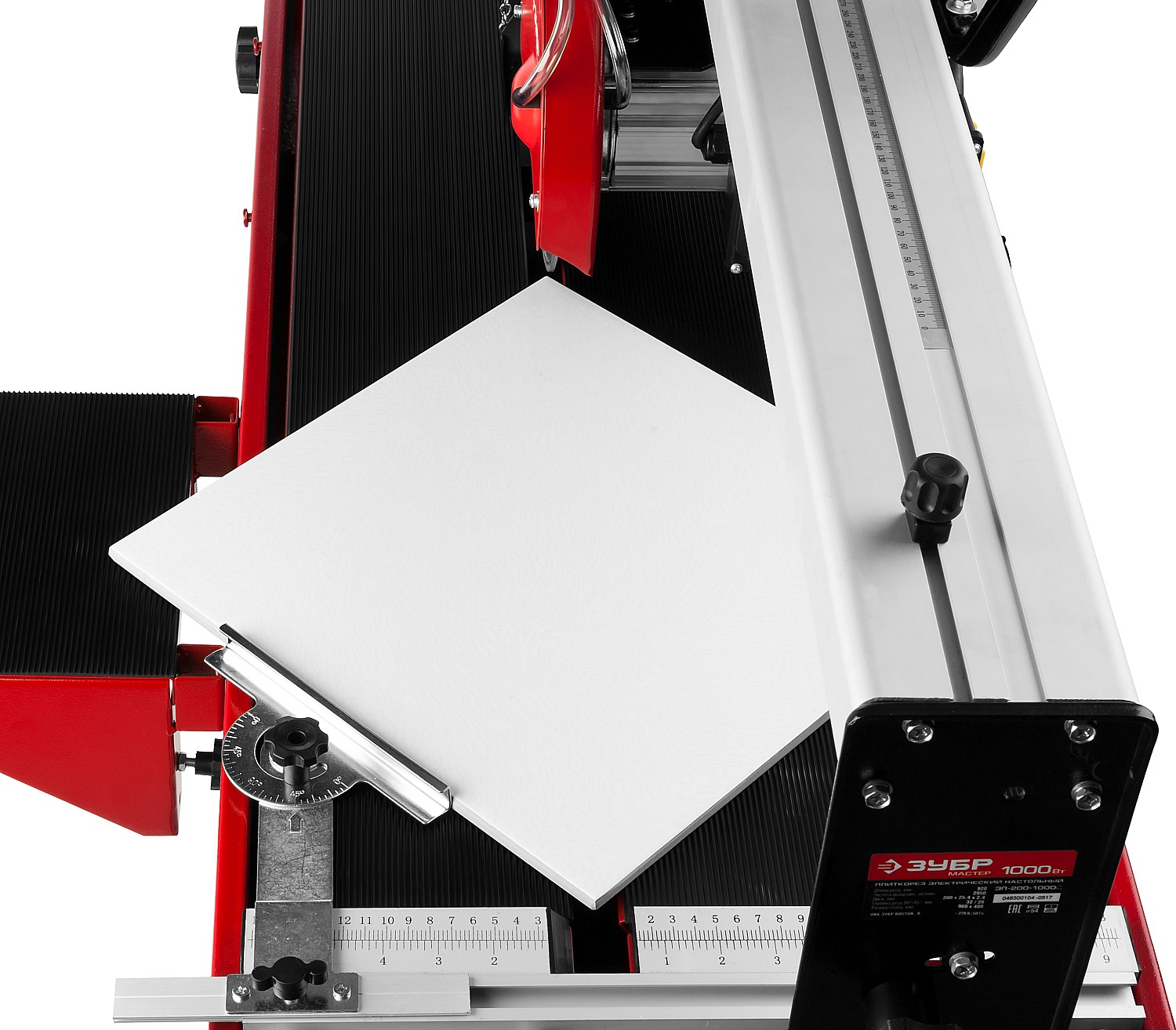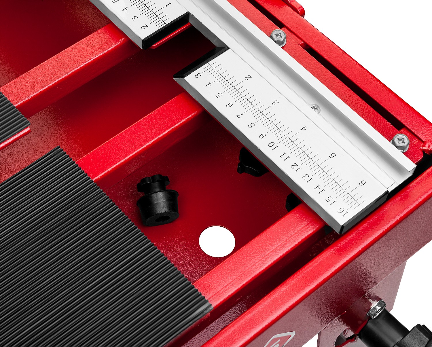- Точная установка разрезаемой плитки благодаря фиксирующему упору со шкалой
