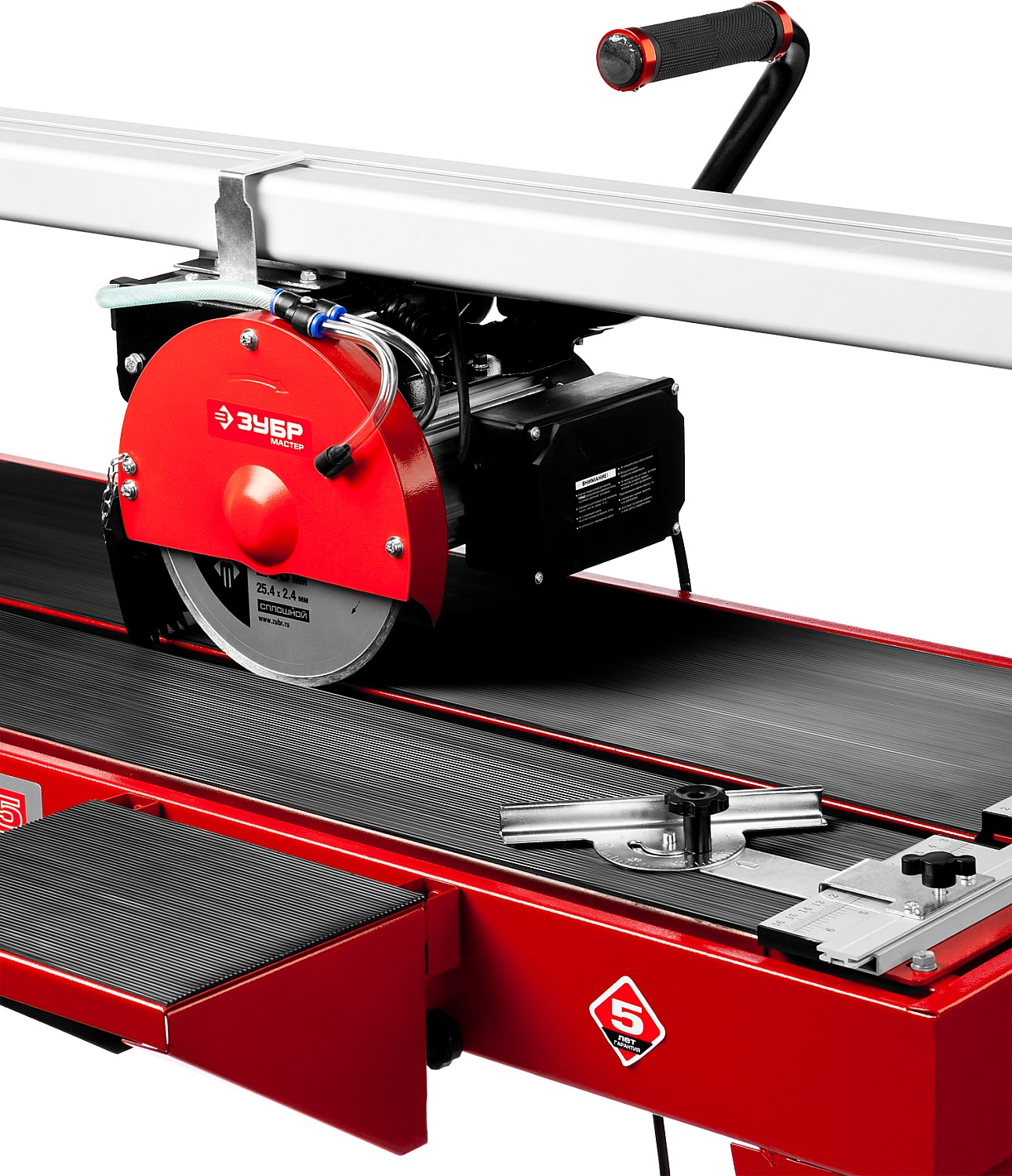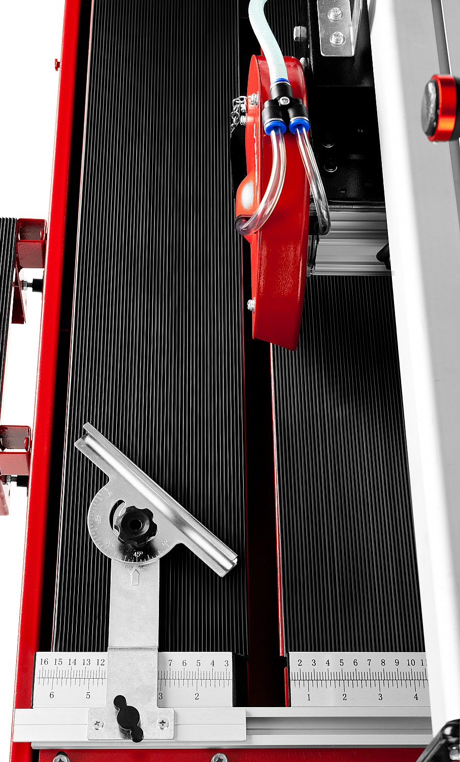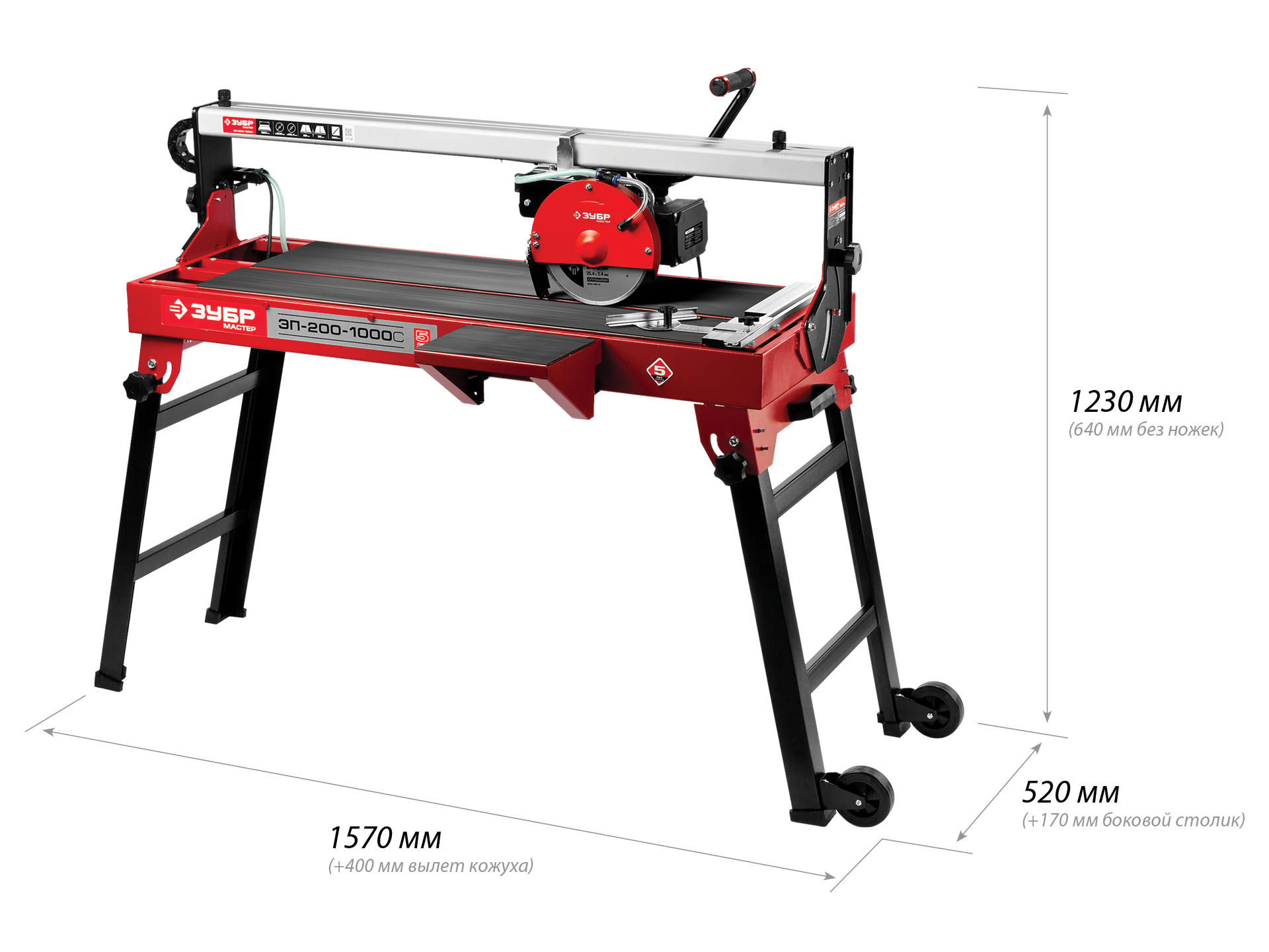 - Точная установка разрезаемой плитки благодаря фиксирующему упору со шкалой