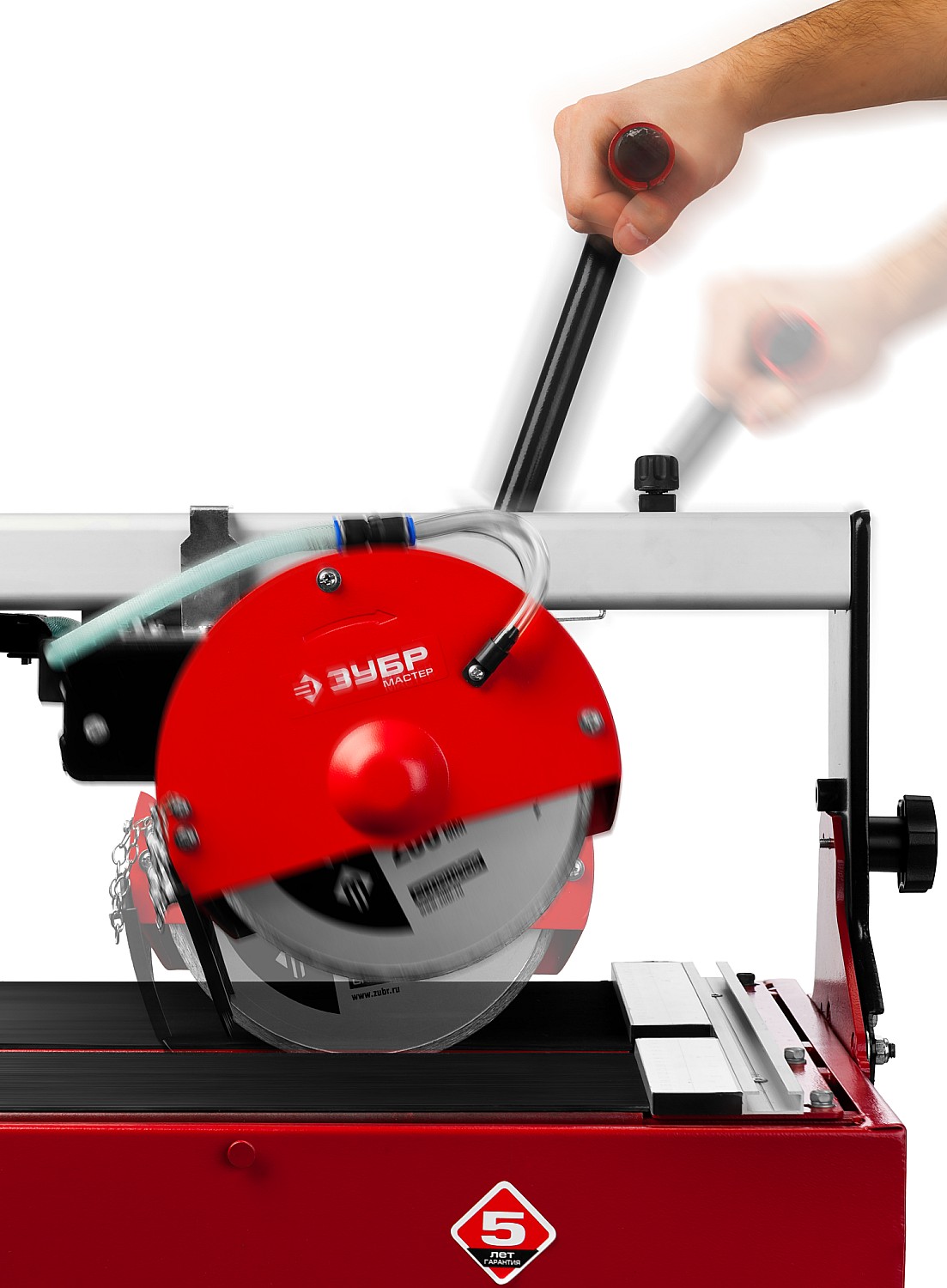 - Принудительное водяное охлаждение предотвращает порчу распиливаемого материала и исключает образование вредной пыли при работе