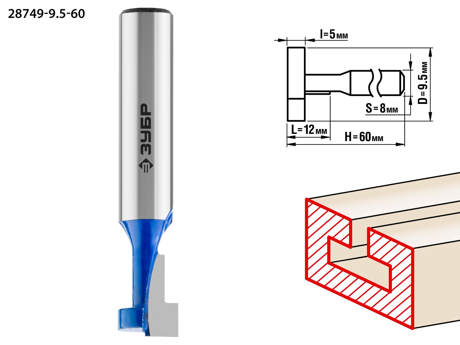 ЗУБР 9.5 x 12 мм, высота 5 мм, фреза пазовая Т-образная №1, Профессионал (28749-9.5-60)
