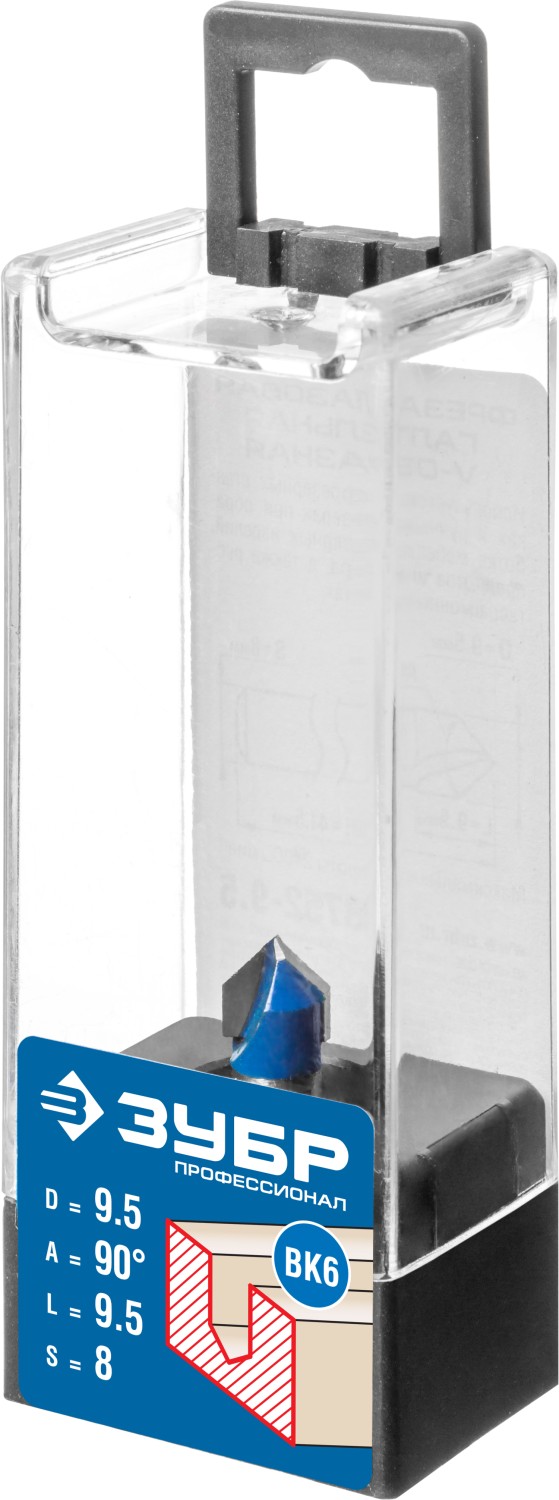 ЗУБР 9.5 x 9.5 мм, угол 90° мм, фреза пазовая галтельная V-образная, Профессионал (28752-9.5)