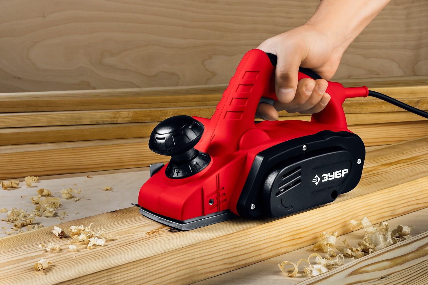 Мощный рубанок для строгания шириной 82 мм и глубиной 2 мм, а также выравнивания поверхностей и снятия фасок. Конструкция обеспечивает возможность выборки четверти. Благодаря бесступенчатой регулировке глубины строгания с точностью 0.1 мм позволяет производить работу с высоким качеством.