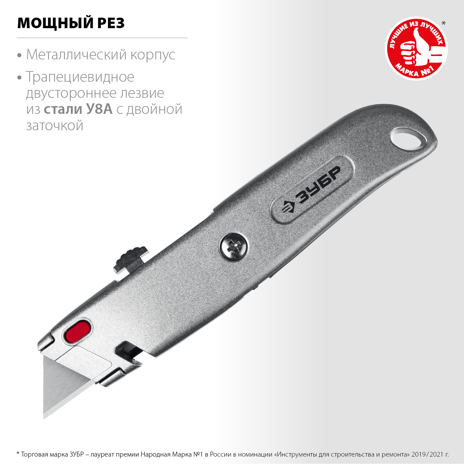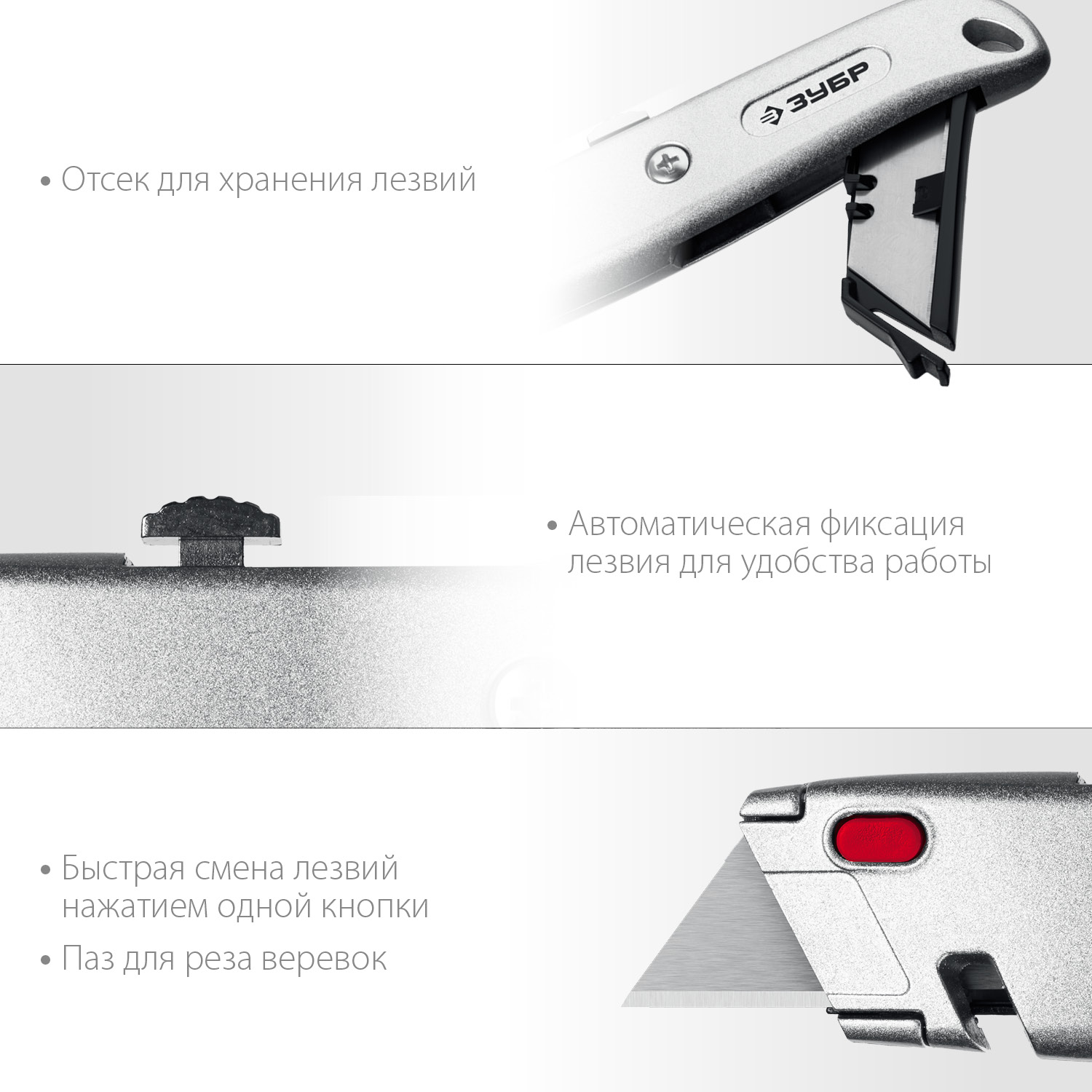 - Выдвижное лезвие с автоматической фиксацией для удобства работы