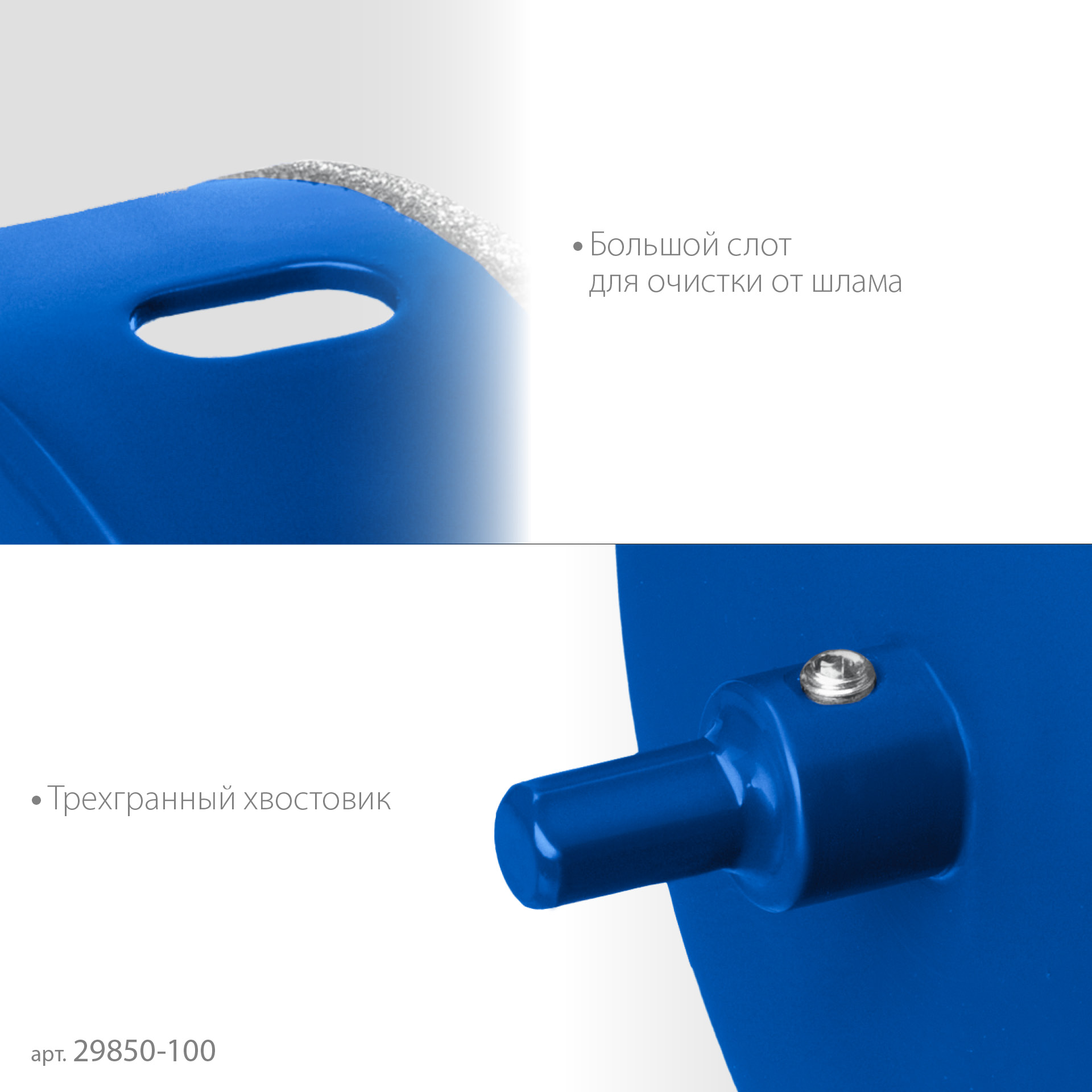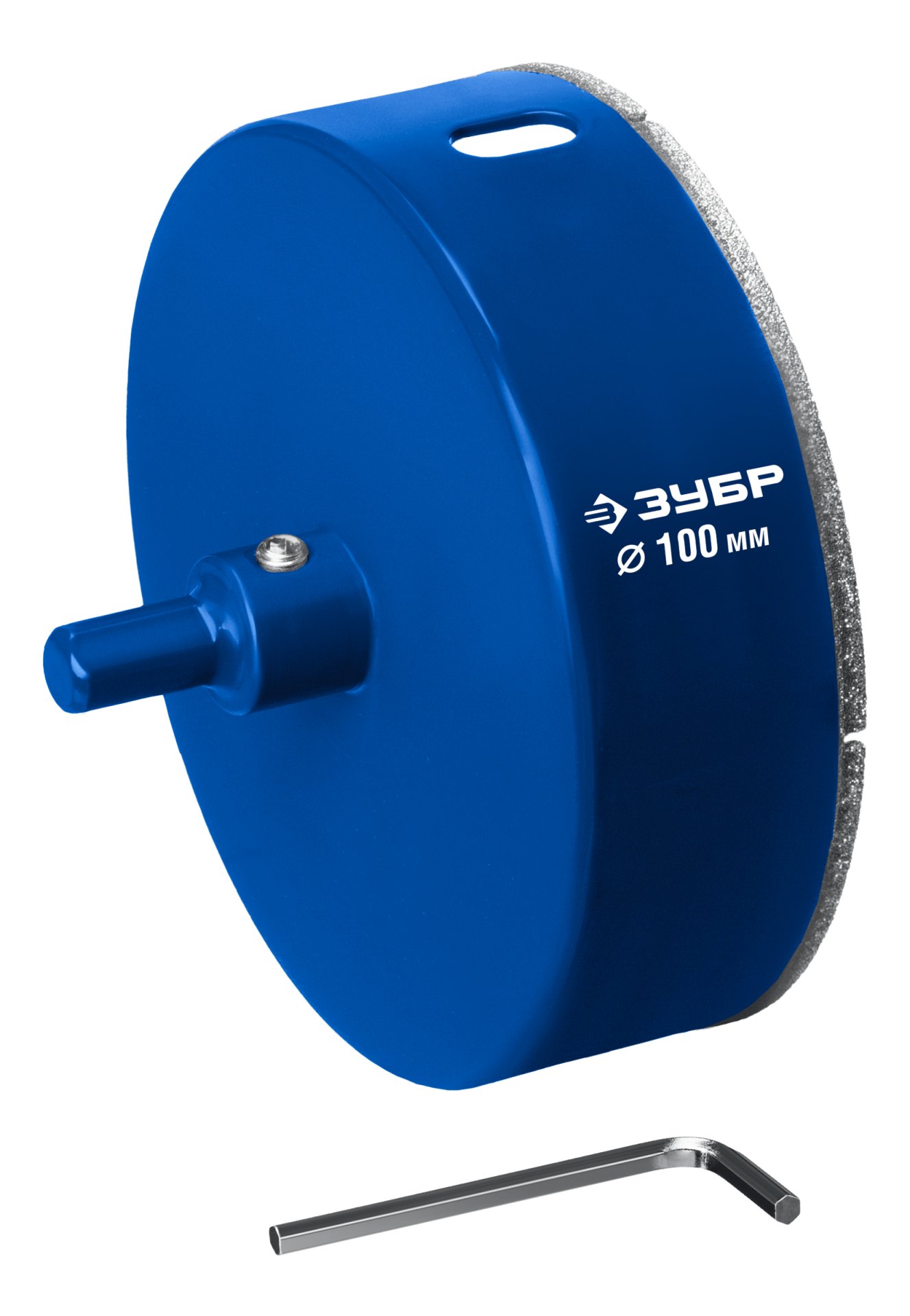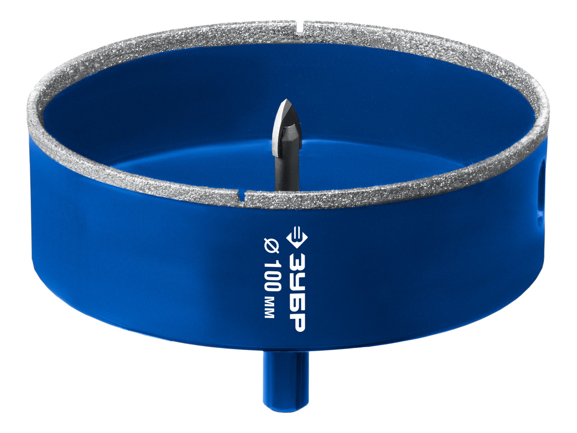 ЗУБР АГК d 100 мм (центр. сверло, трехгр. хвост, Р60), Алмазная коронка, Профессионал (29850-100)