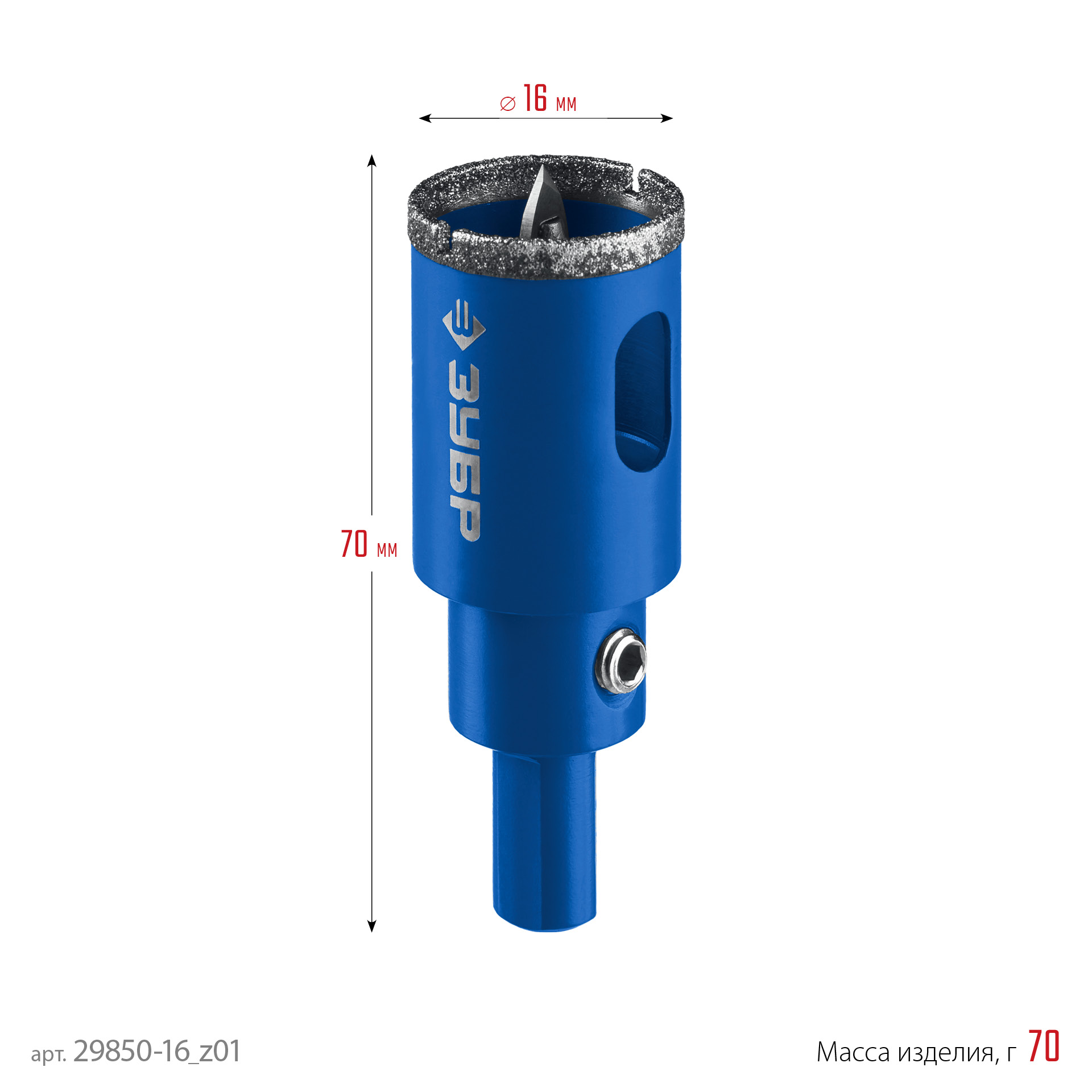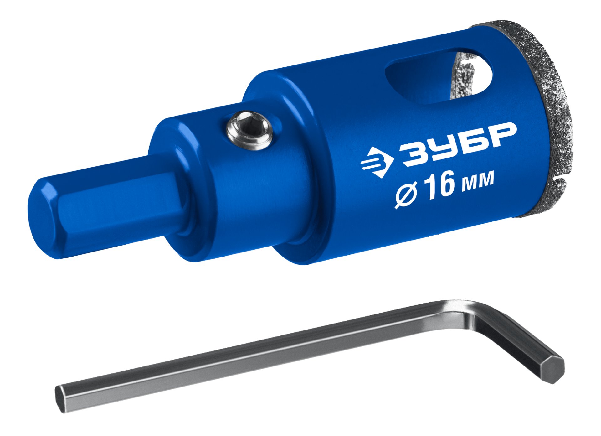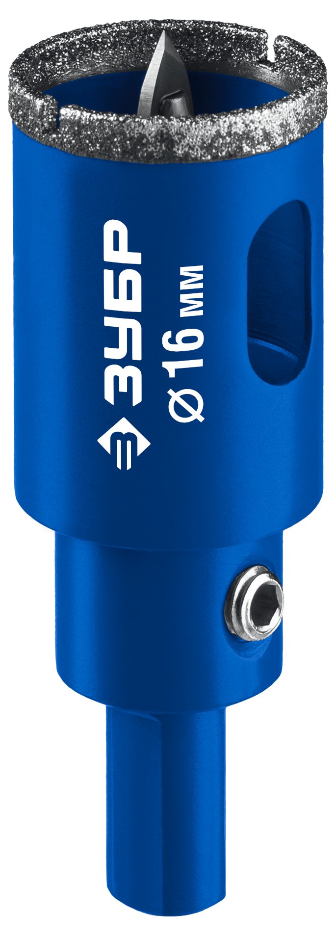ЗУБР АГК d 16 мм (центр. сверло, трехгр. хвост, Р60), Алмазная коронка, Профессионал (29850-16)