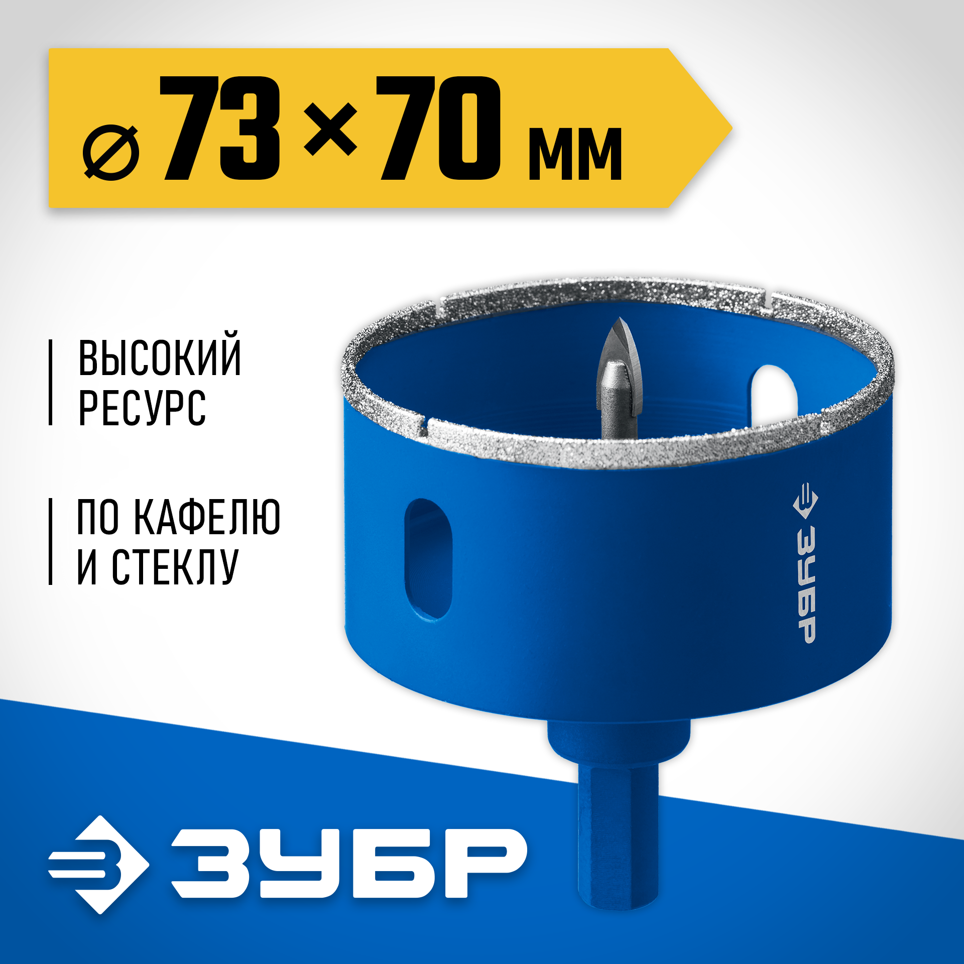 ЗУБР АГК, d 73 мм, (центр. сверло, трехгр. хвост, Р60), алмазная коронка, Профессионал (29850-73)