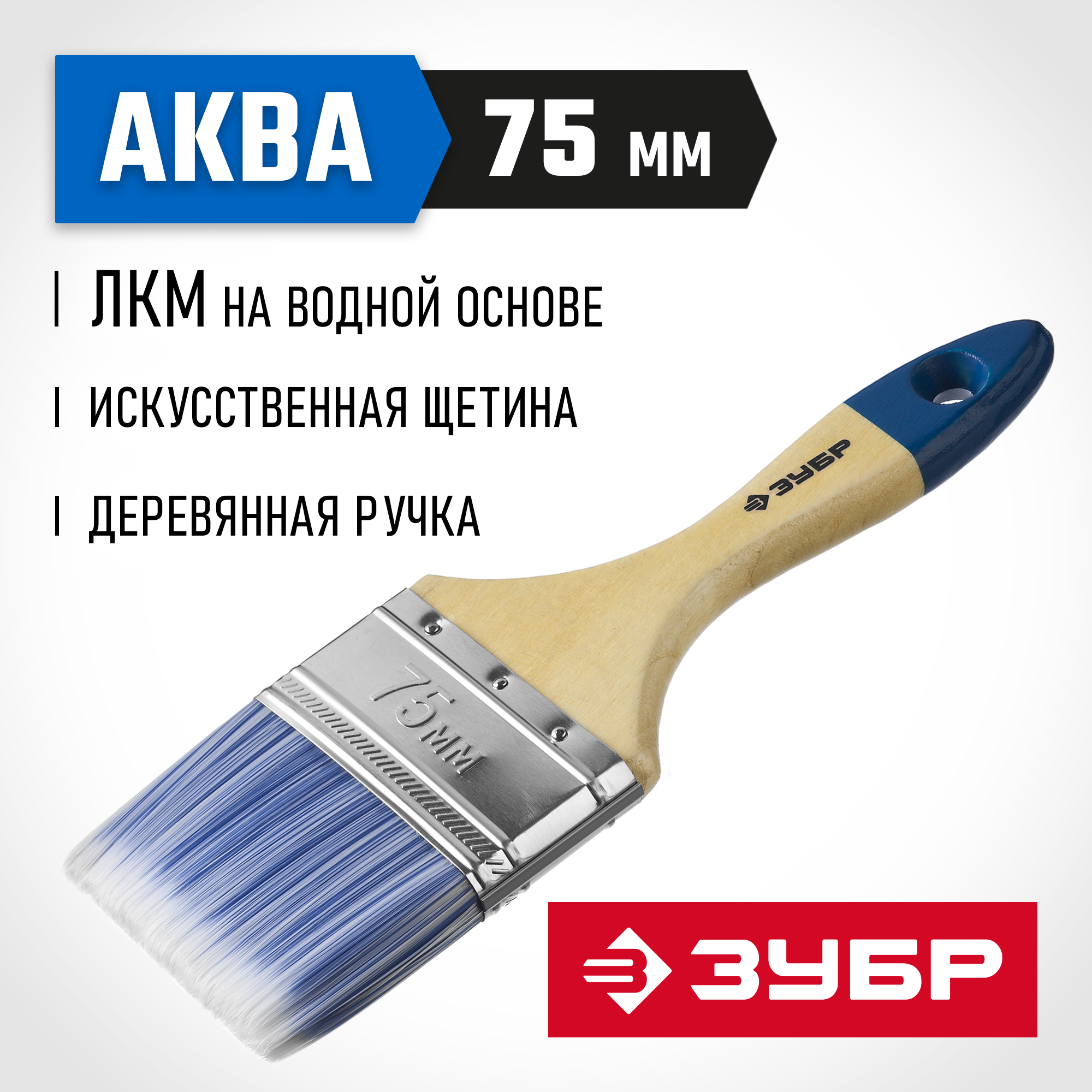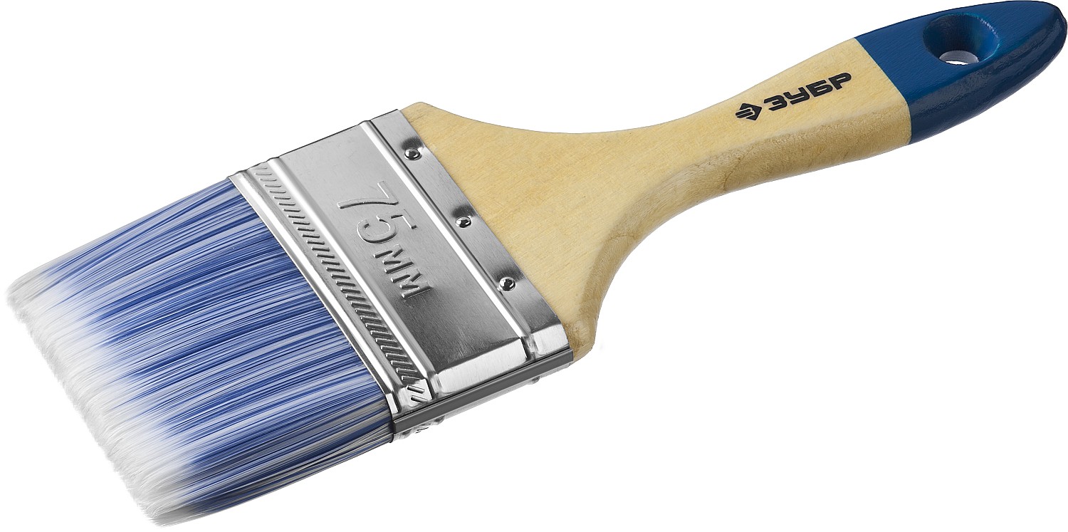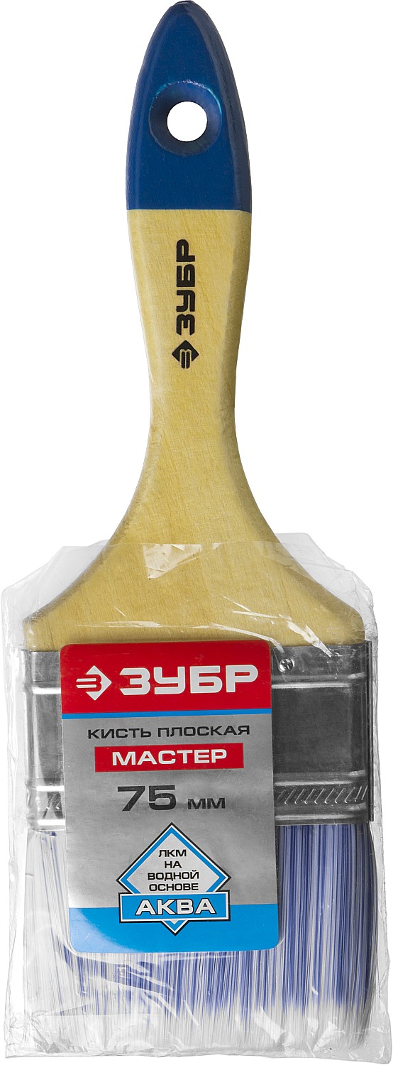 ЗУБР АКВА, 75 мм, 3″, светлая искусственная щетина, деревянная ручка, для воднодисперсионных и акриловых ЛКМ, плоская кисть (4-01007-075)