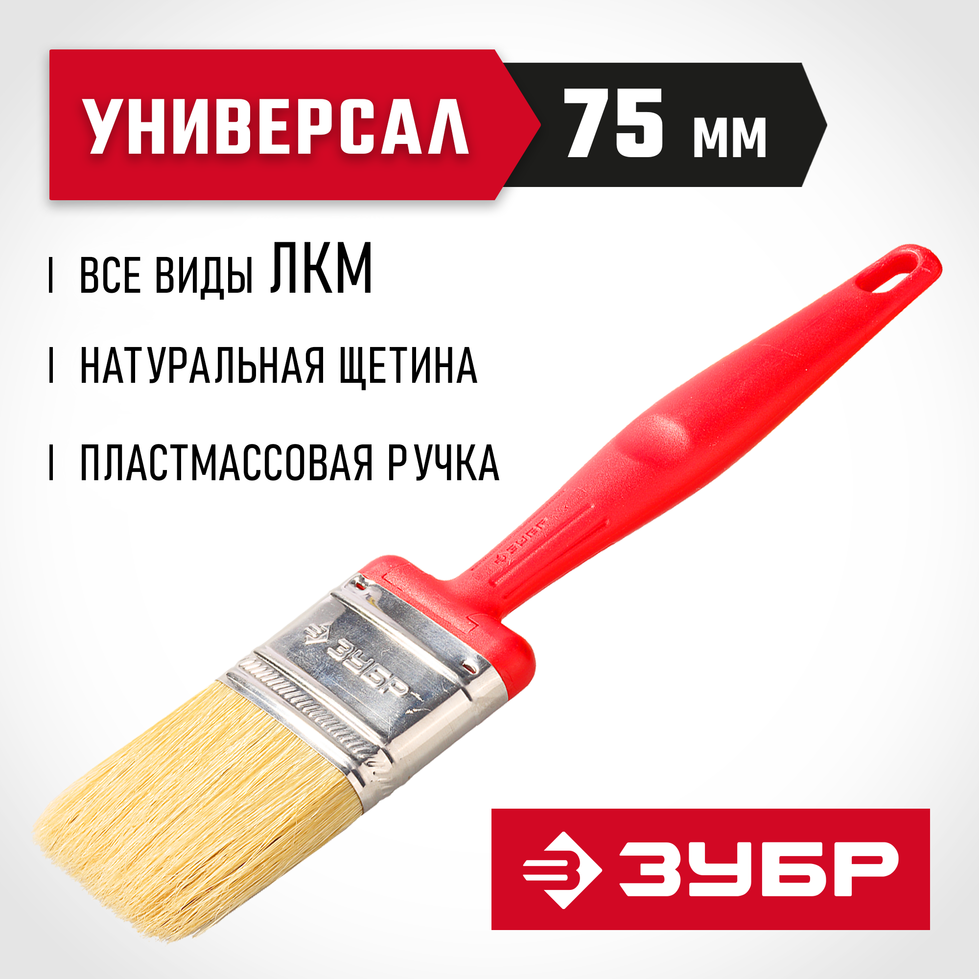ЗУБР Аква БСГ-50, 75 мм, светлая натуральная щетина, все виды ЛКМ, плоская кисть (4-01050-075)