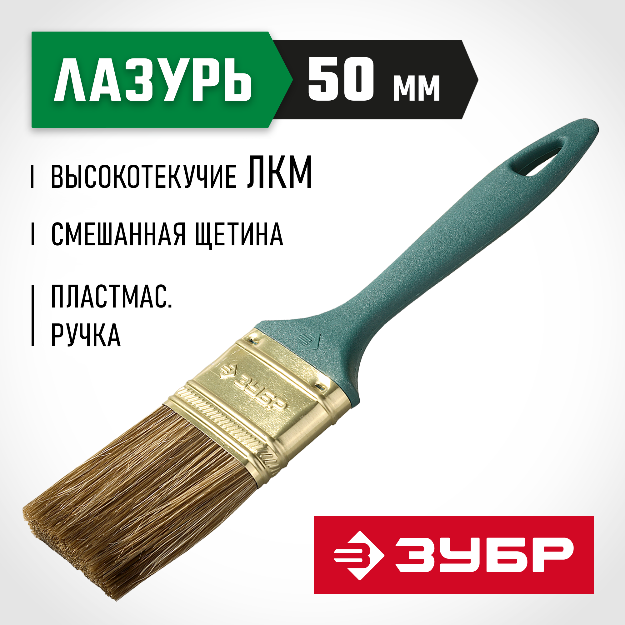 ЗУБР Аква КП-14, 50 мм, 2″, смешанная щетина, пластмассовая рукоятка, плоская кисть (4-01014-050)