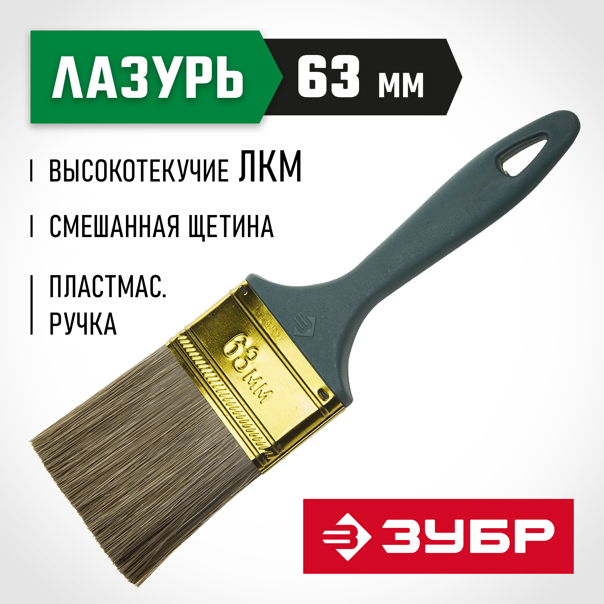 ЗУБР Аква КП-14, 63 мм, 2.5″, смешанная щетина пластмассовая рукоятка, плоская кисть (4-01014-063)
