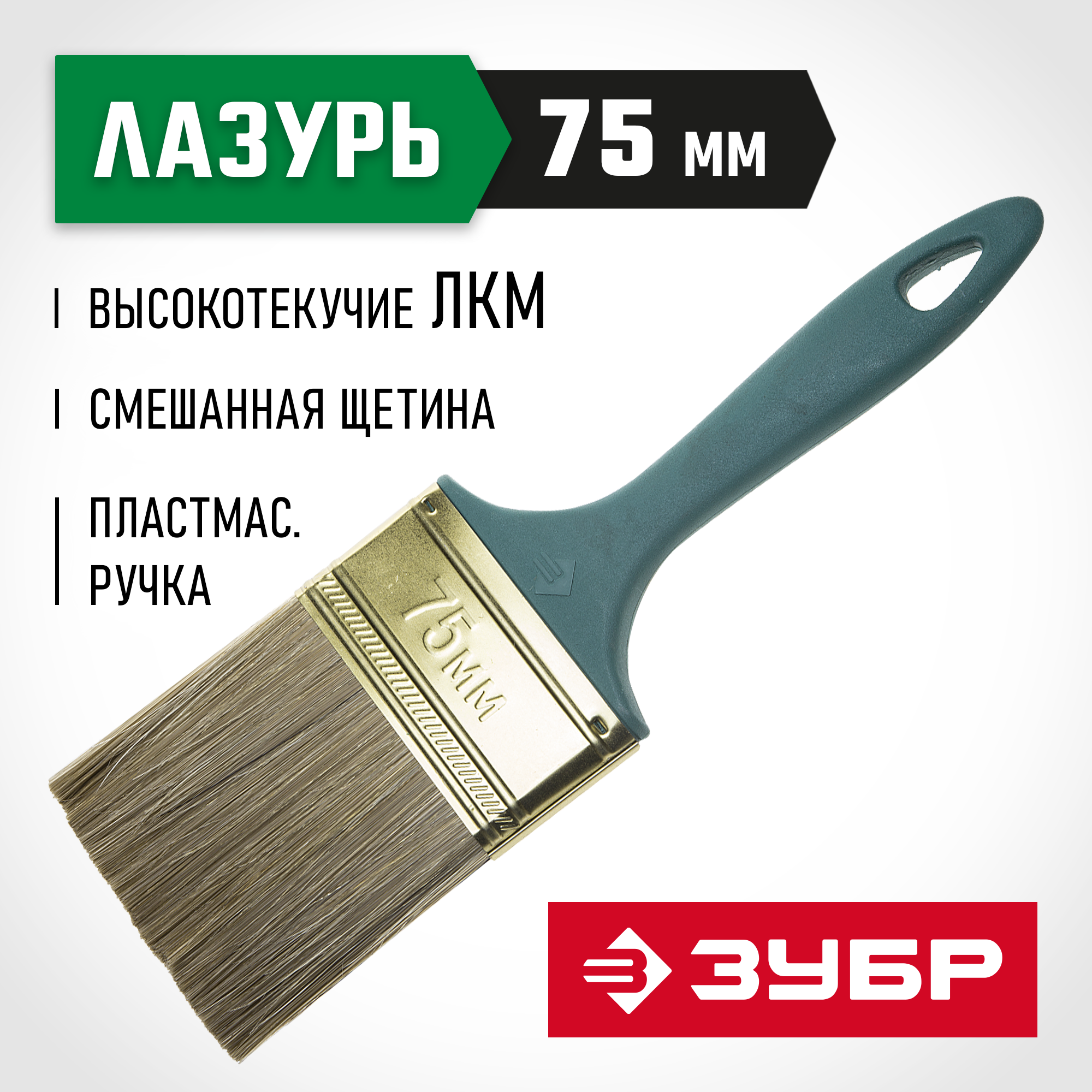 ЗУБР Аква КП-14, 75 мм, 3″, смешанная щетина, пластмассовая рукоятка, плоская кисть (4-01014-075)