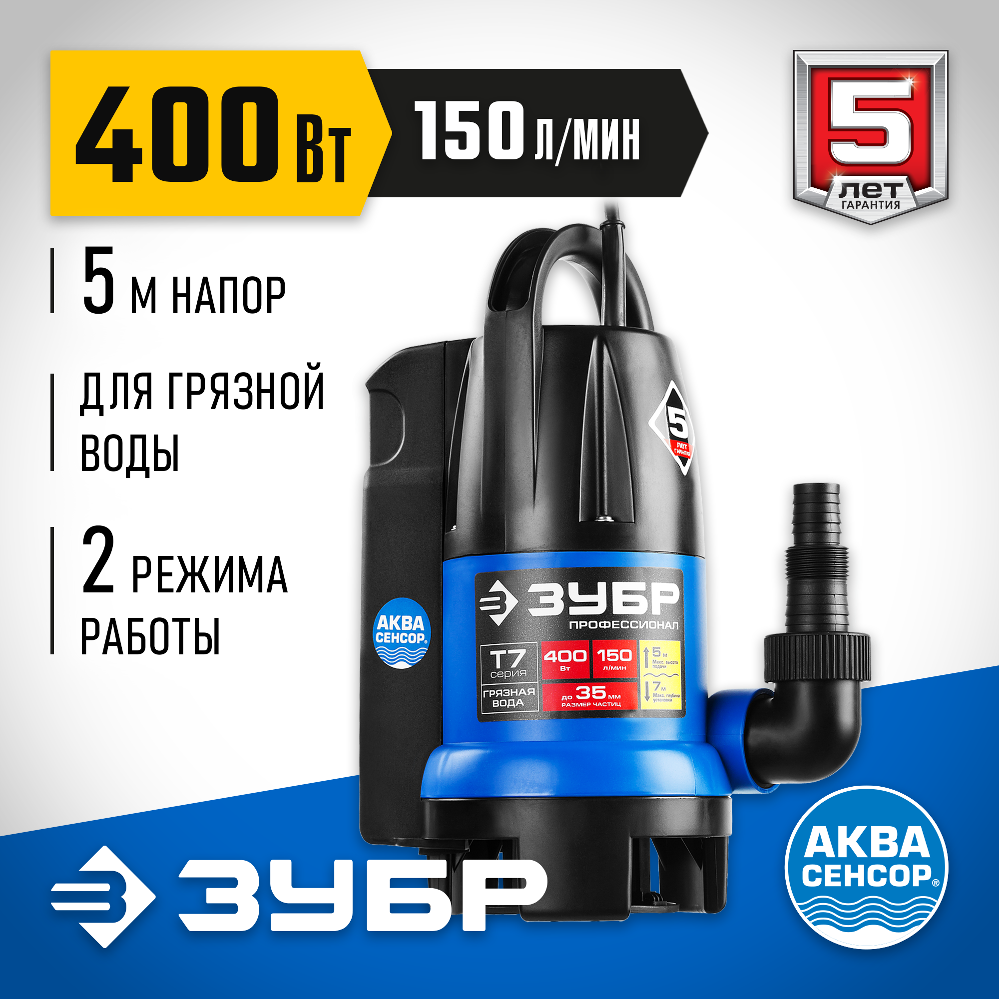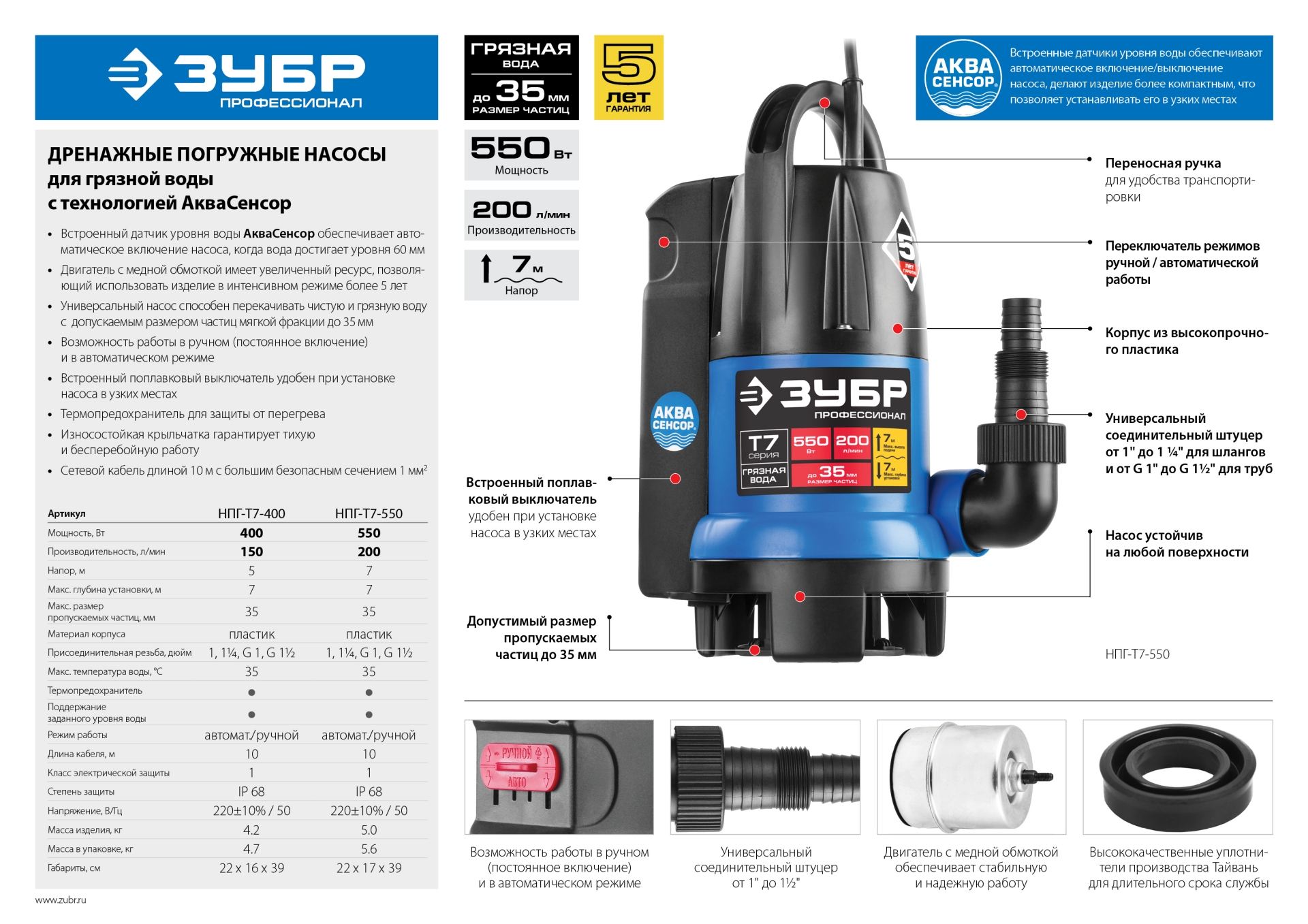 - Универсальный насос способен перекачивать чистую и грязную воду с допускаемым размером частиц мягкой фракции до 35 мм