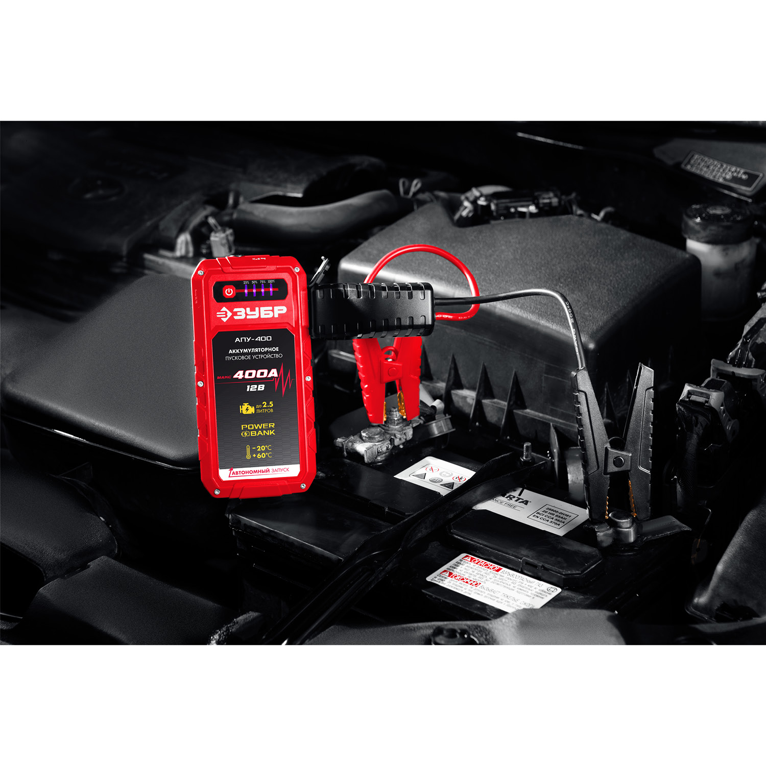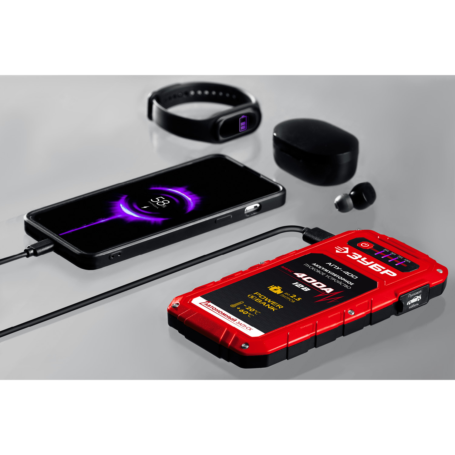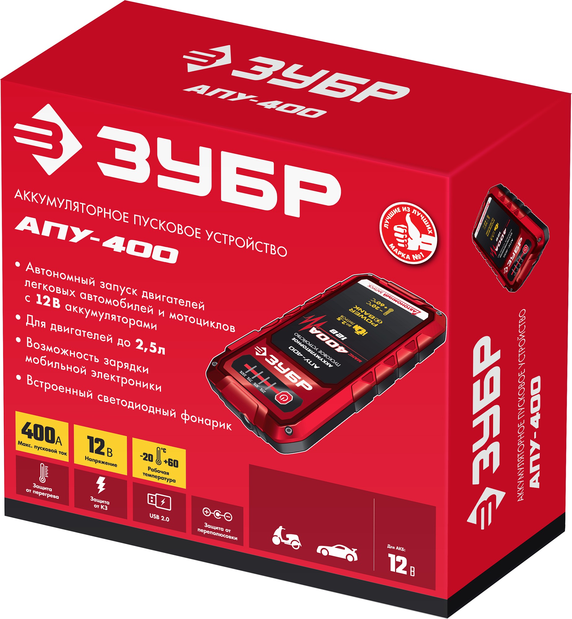Специальное пуско-зарядное устройство с литий-полимерными аккумуляторами, для аварийного запуска двигателя транспортного средства в случае неисправной АКБ. Устройство подходит для любых типов транспортных средств с напряжением бортовой сети 12В, а также служит для подзарядки и работы широкого ряда мобильной техники и электроники от встроенных разъемов USB 5В. Рекомендовано для любых типов транспортных средств бензиновыми двигателями до 2500 см. куб.