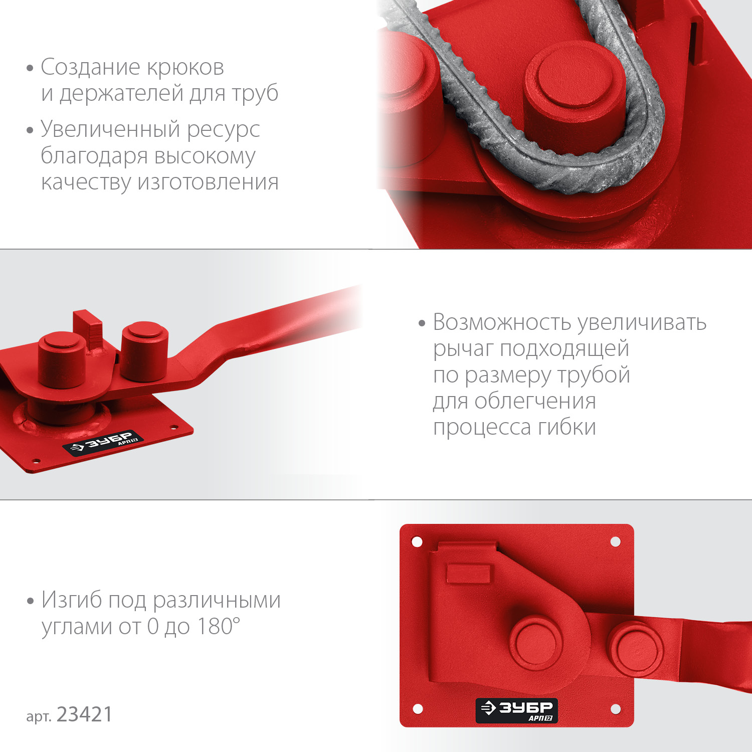 - Возможность увеличивать рычаг для облегчения процесса гибки