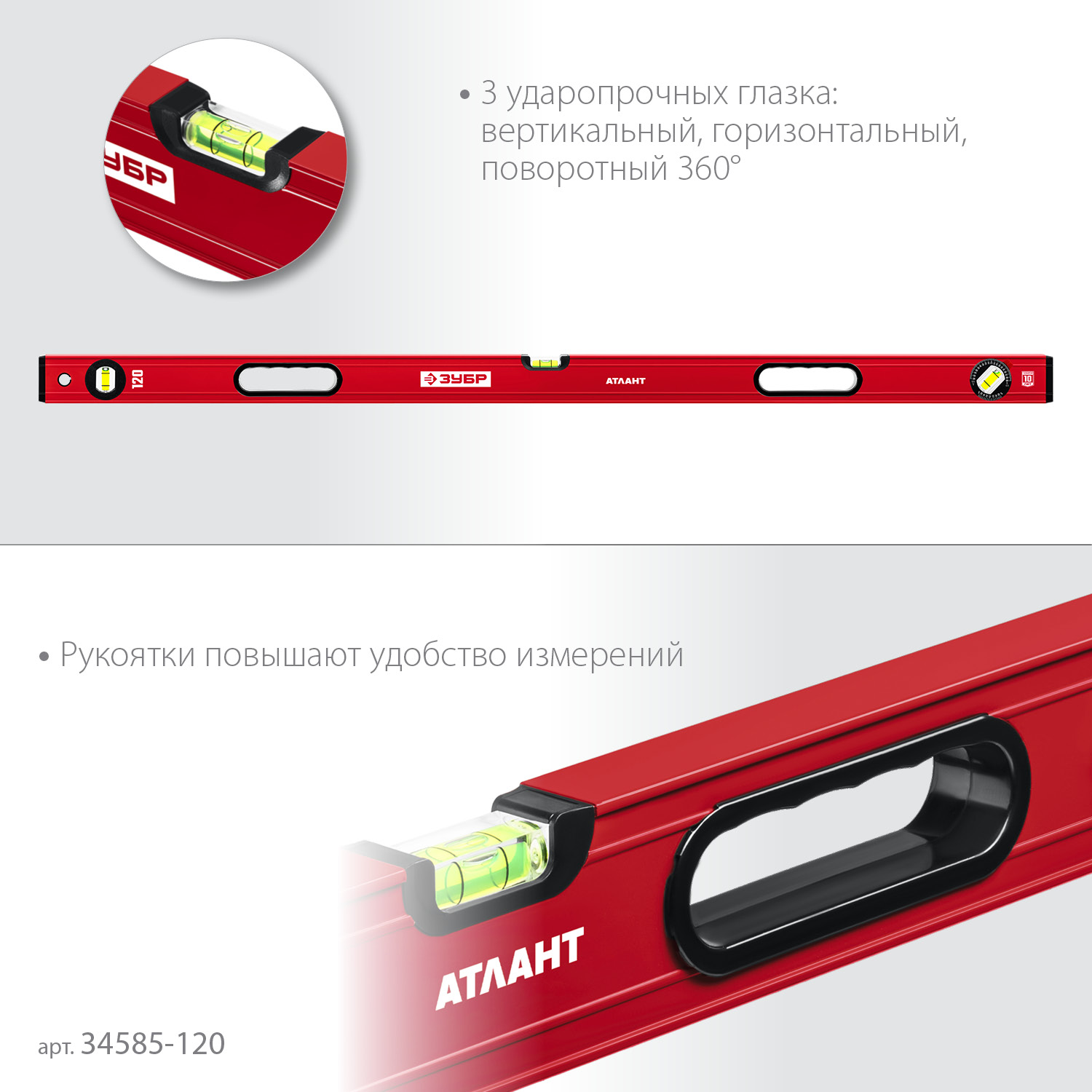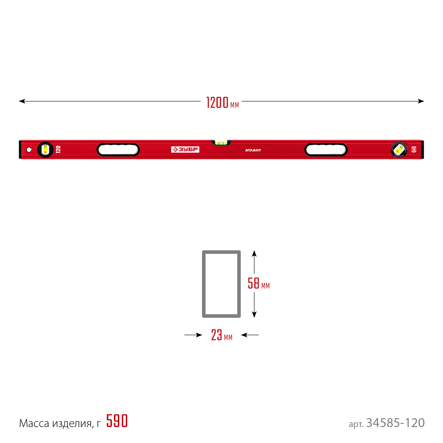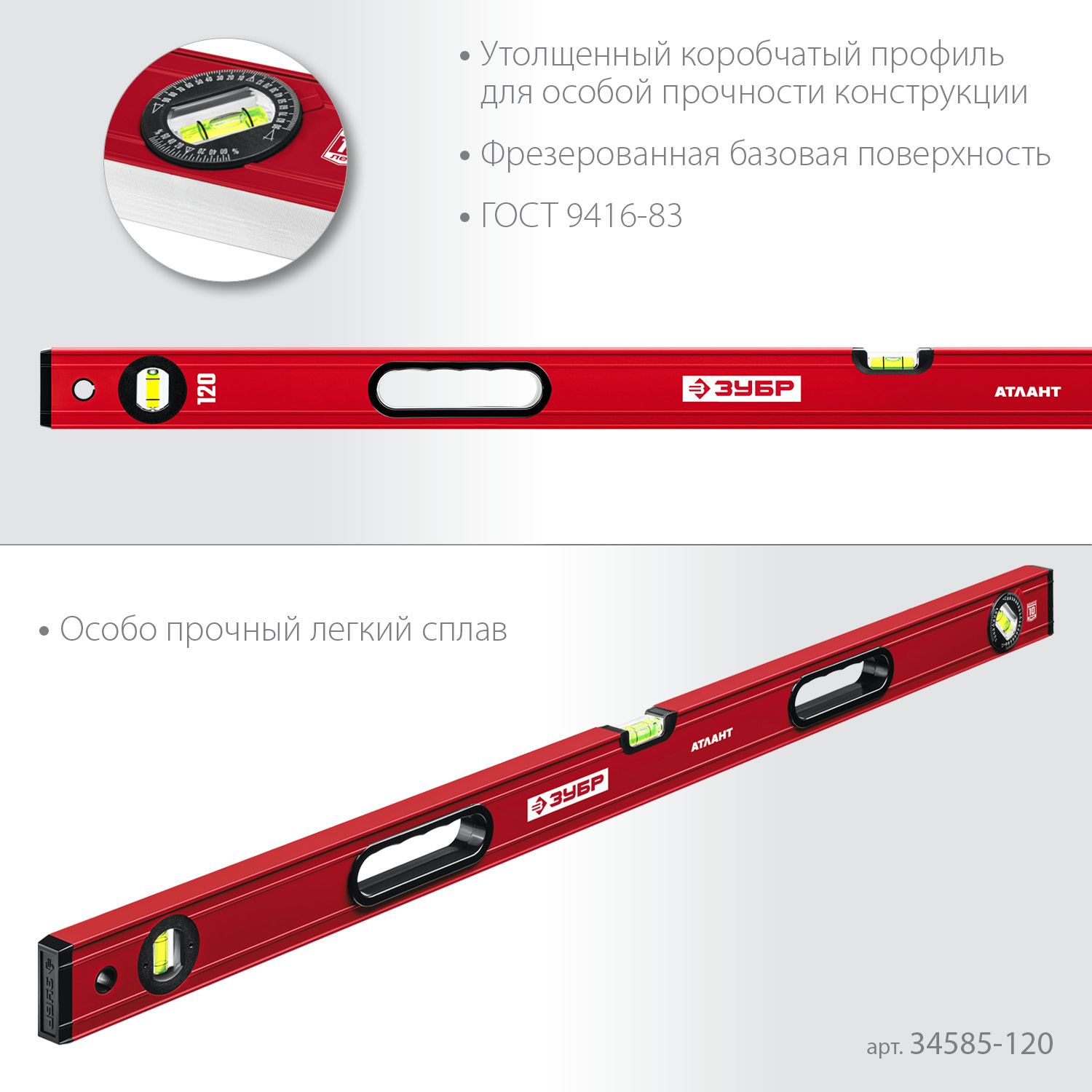 ЗУБР АТЛАНТ, 1200 мм, уровень с усиленным профилем (34585-120)