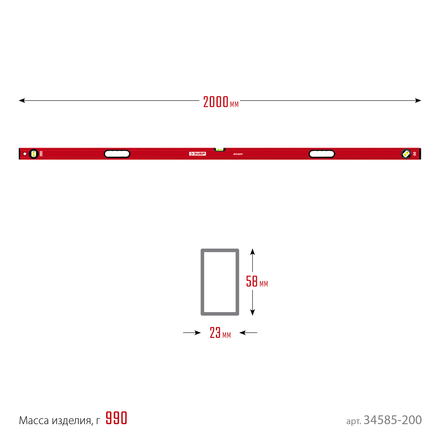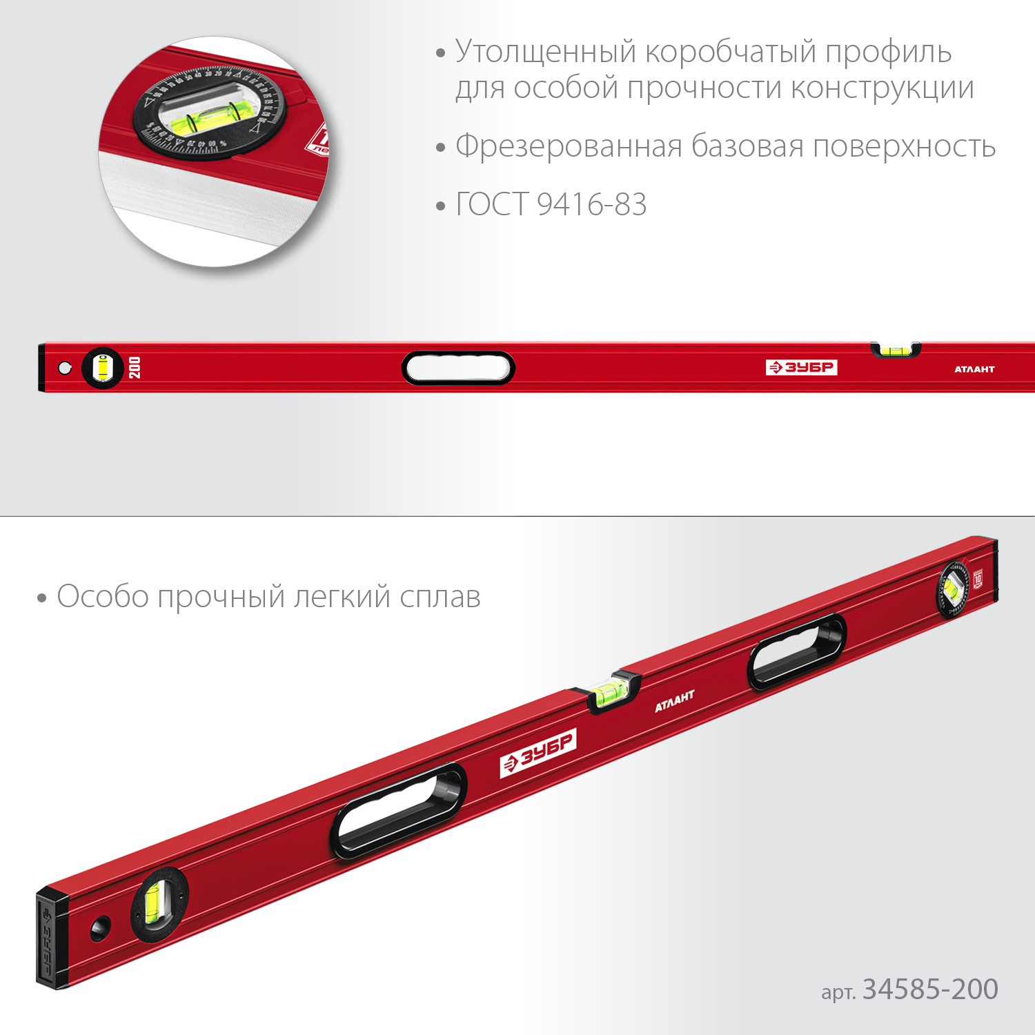 ЗУБР АТЛАНТ, 2000 мм, уровень с усиленным профилем (34585-200)