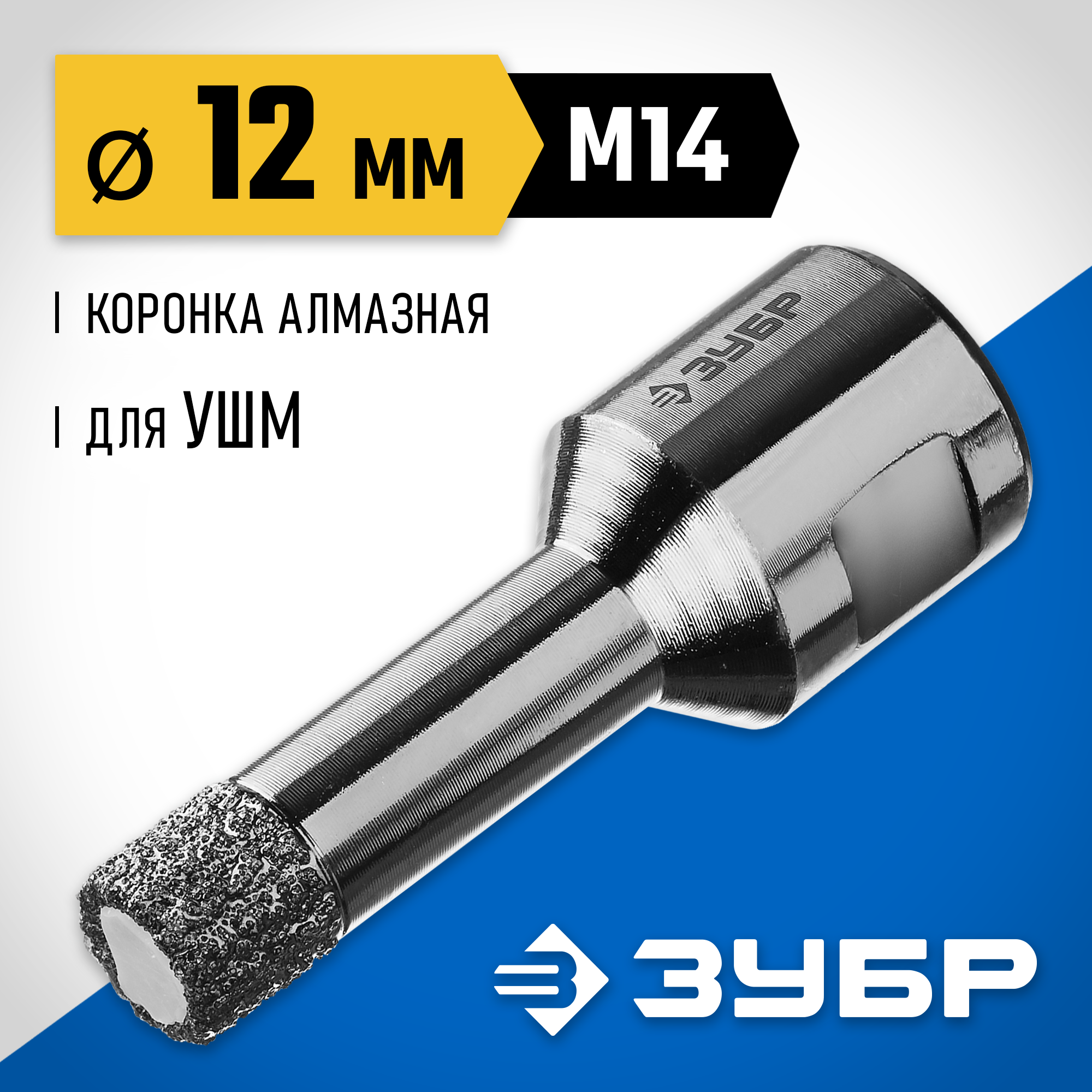 ЗУБР АВК, d 12 мм, (М14, 15 мм кромка), вакуумная алмазная коронка, Профессионал (29865-12-M14)