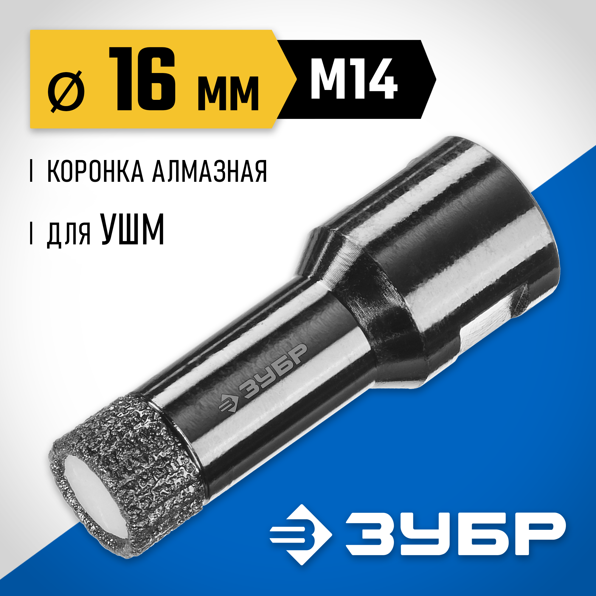 ЗУБР АВК, d 16 мм, (М14, 15 мм кромка), вакуумная алмазная коронка, Профессионал (29865-16)