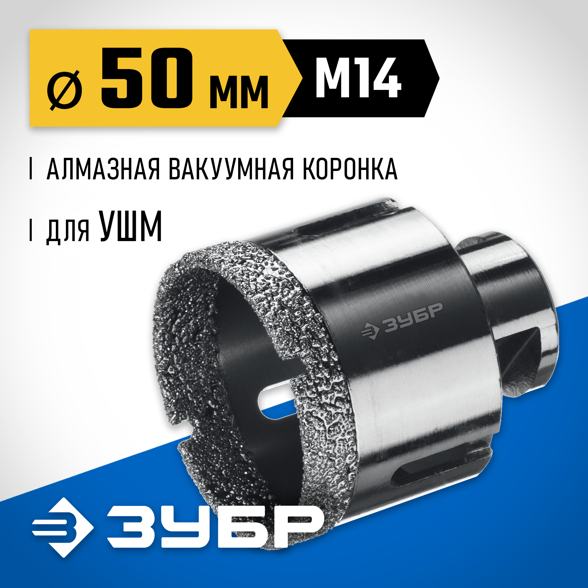 ЗУБР АВК, d 50 мм, (М14, 15 мм кромка), вакуумная алмазная коронка, Профессионал (29865-50)