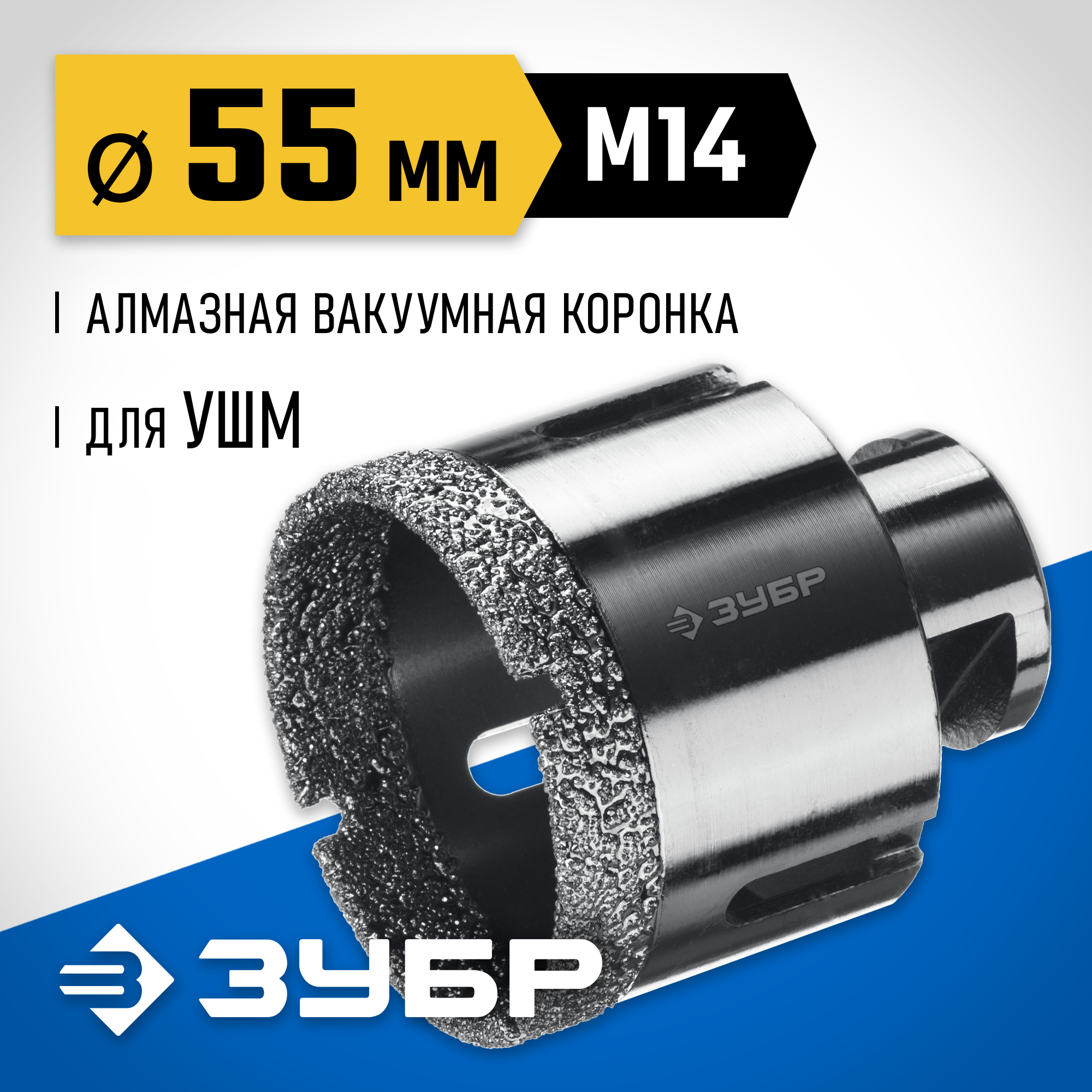 ЗУБР АВК, d 55 мм, (М14, 15 мм кромка), вакуумная алмазная коронка, Профессионал (29865-55)