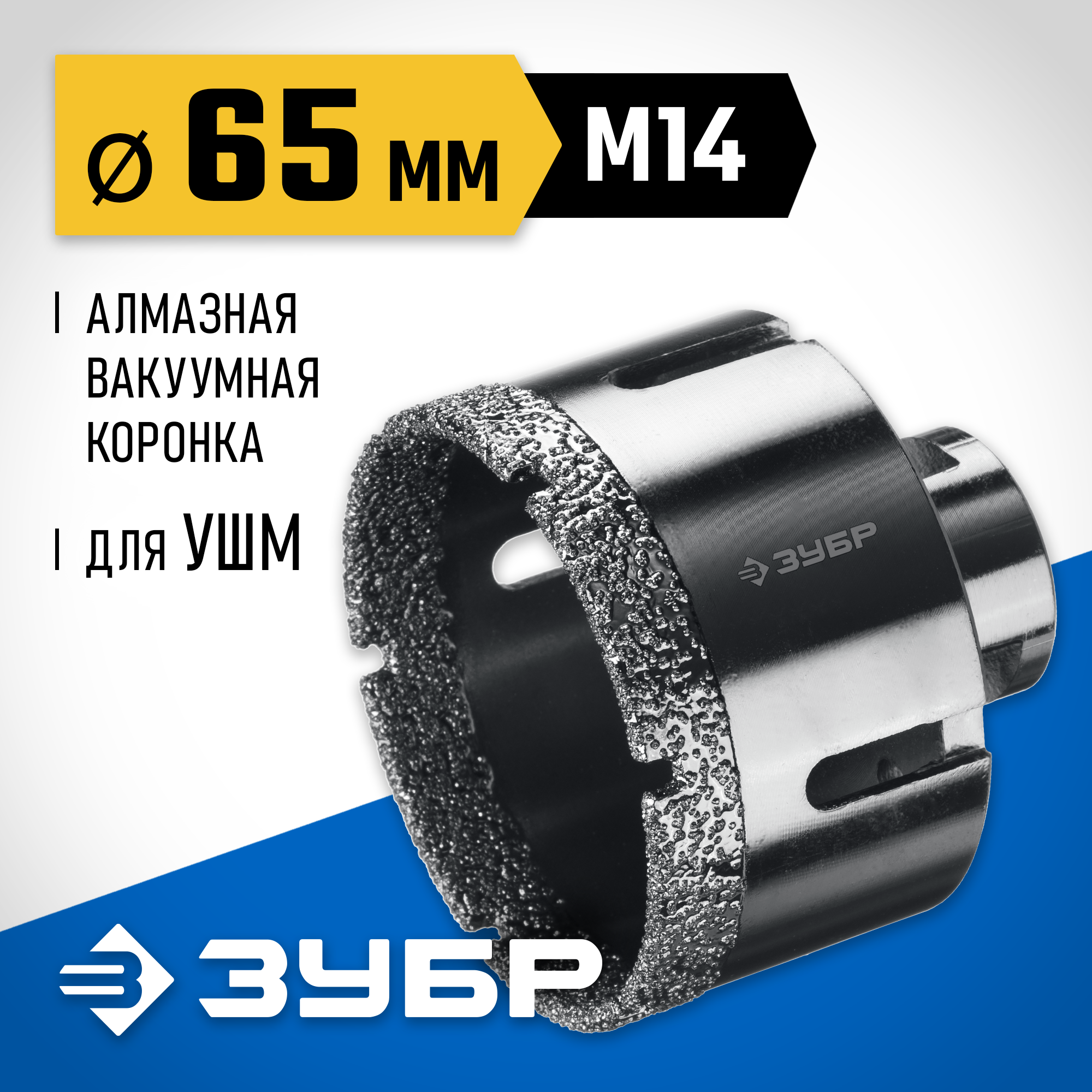 ЗУБР АВК, d 65 мм, (М14, 15 мм кромка), вакуумная алмазная коронка, Профессионал (29865-65)