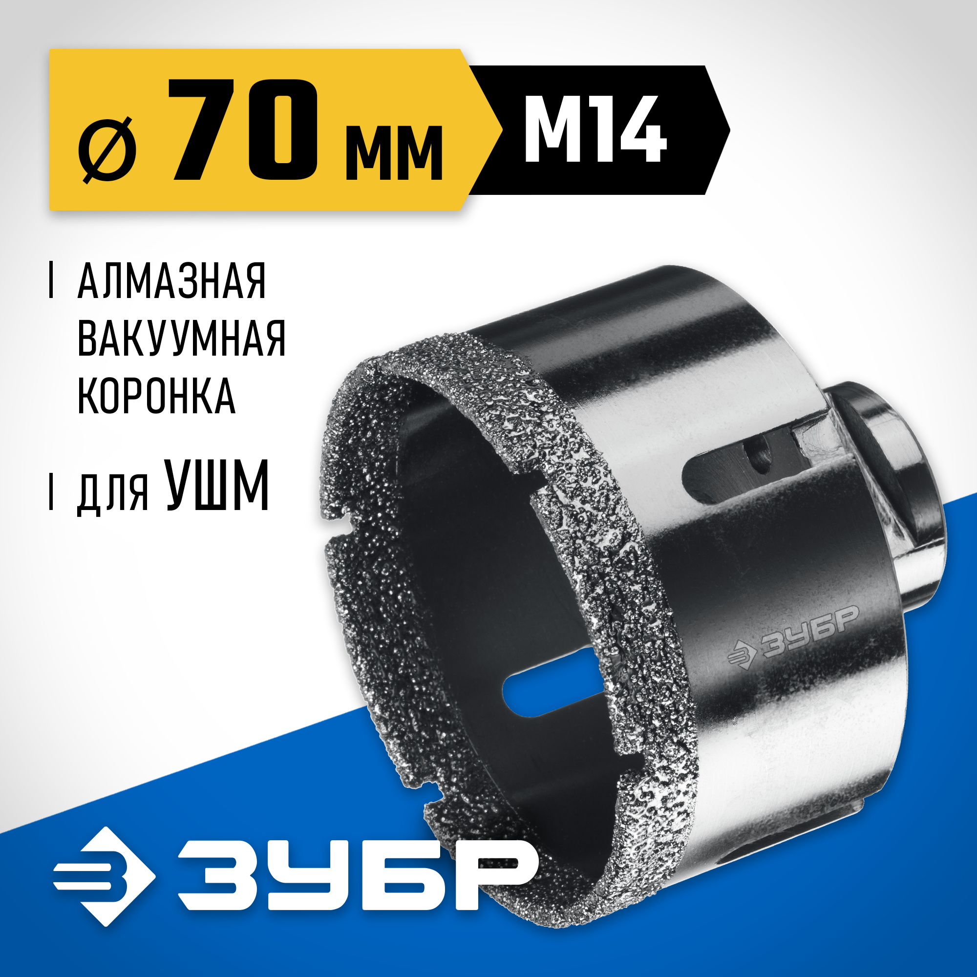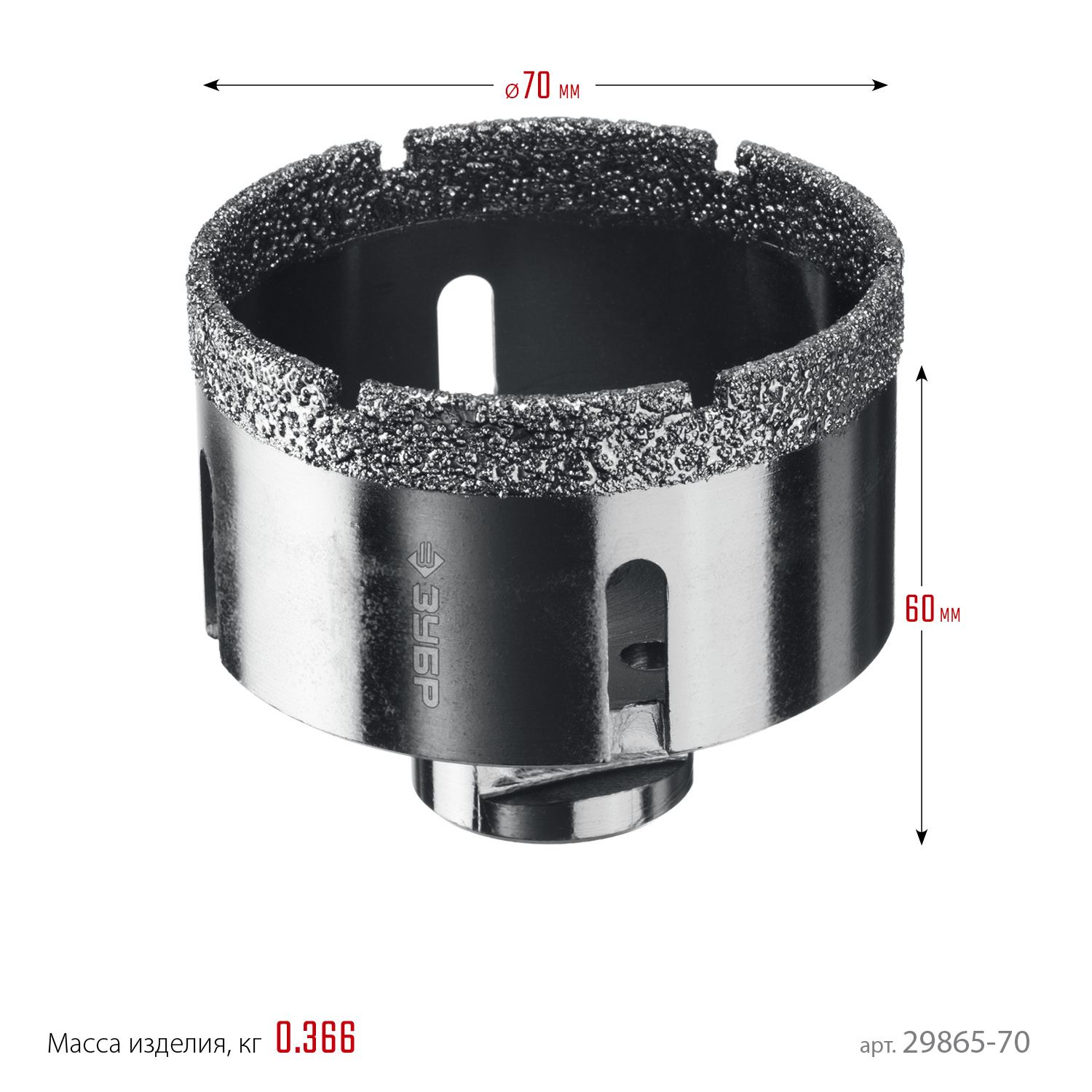ЗУБР АВК, d 70 мм, (М14, 15 мм кромка), вакуумная алмазная коронка, Профессионал (29865-70)