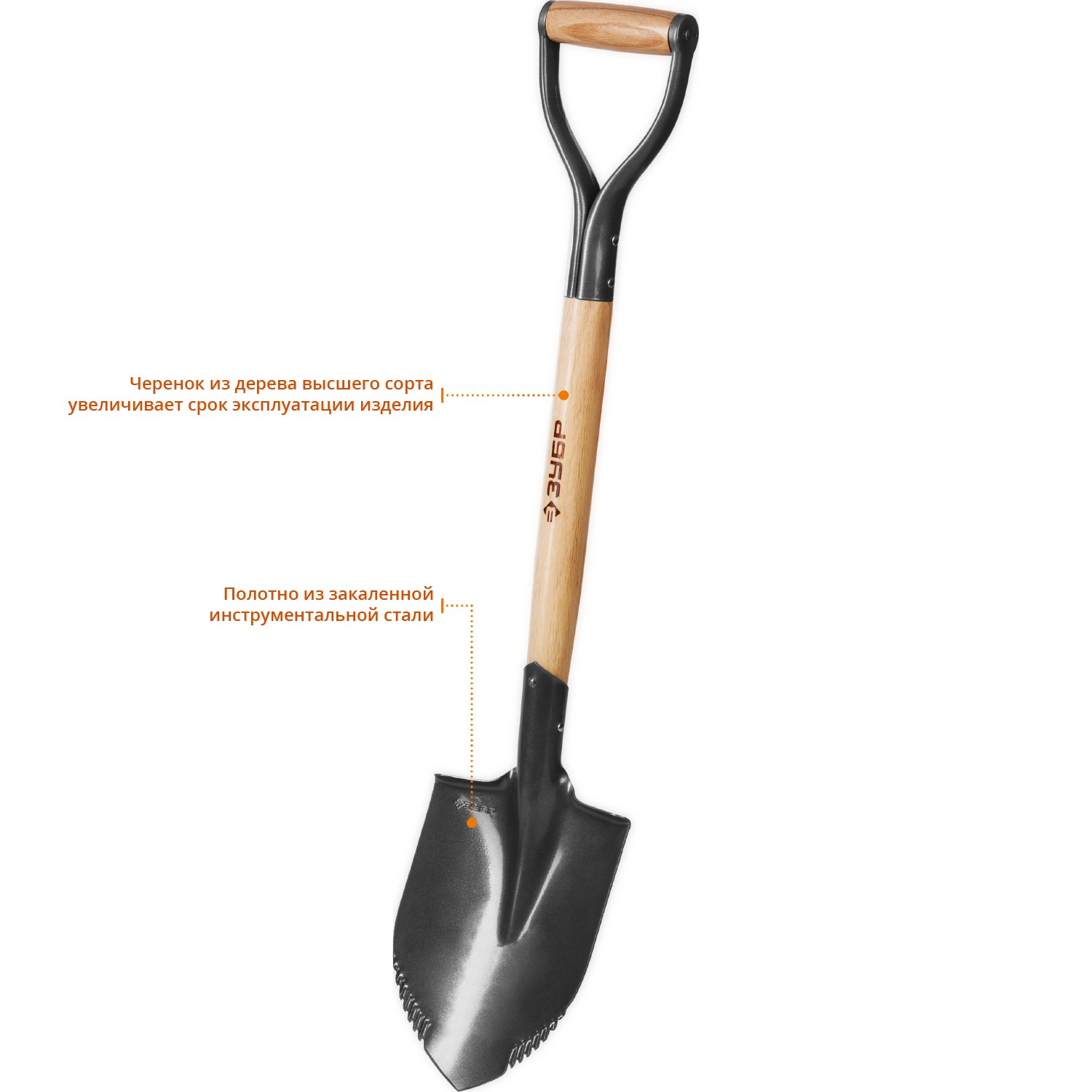 - Прочный черенок с рукояткой