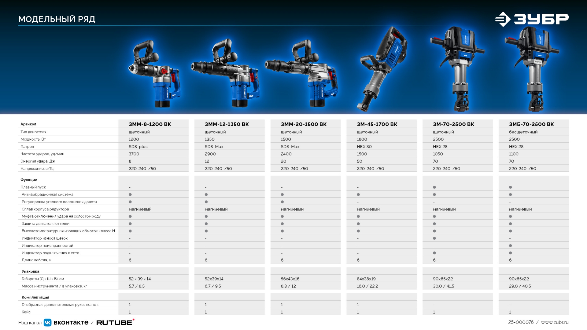 - Мощнейшая энергия удара 70Дж для разрушения бетона, камня или кирпича