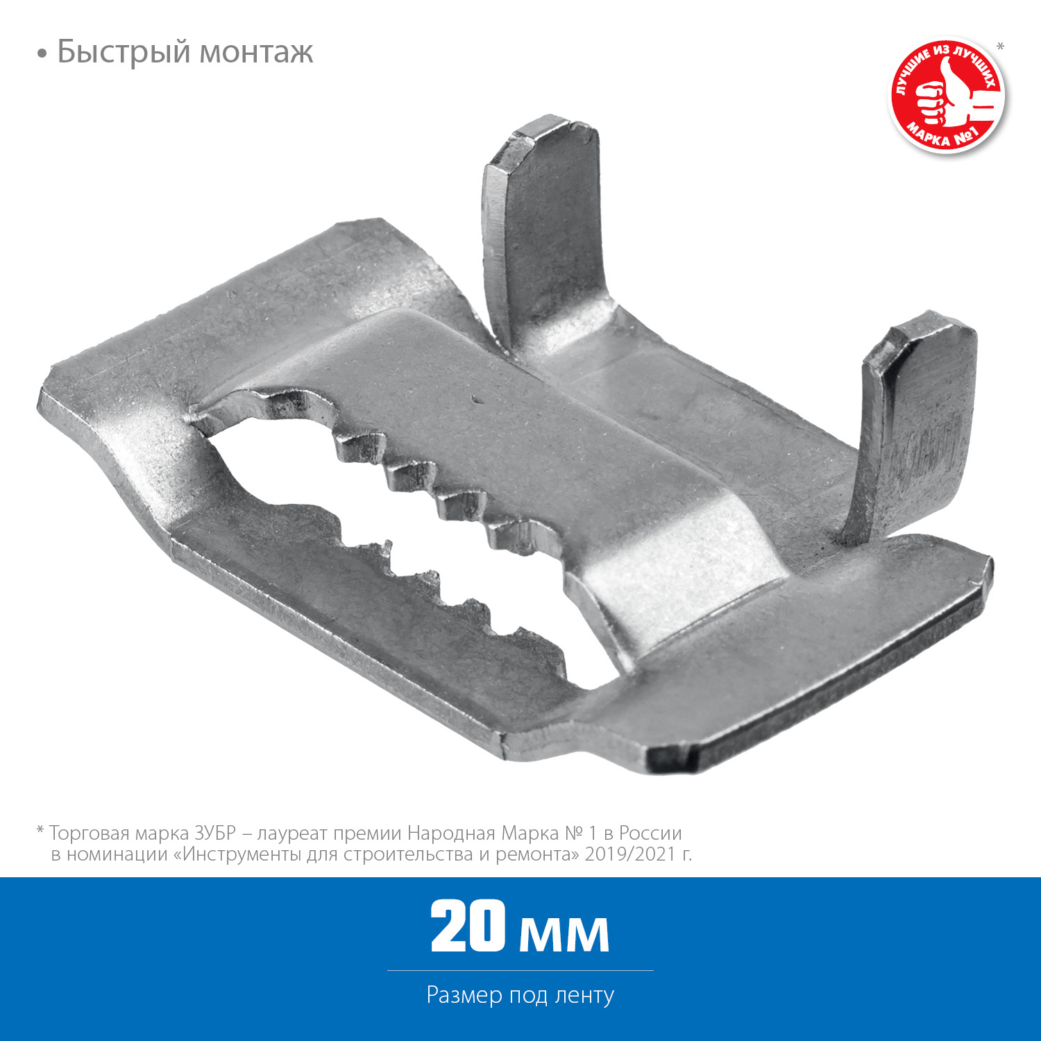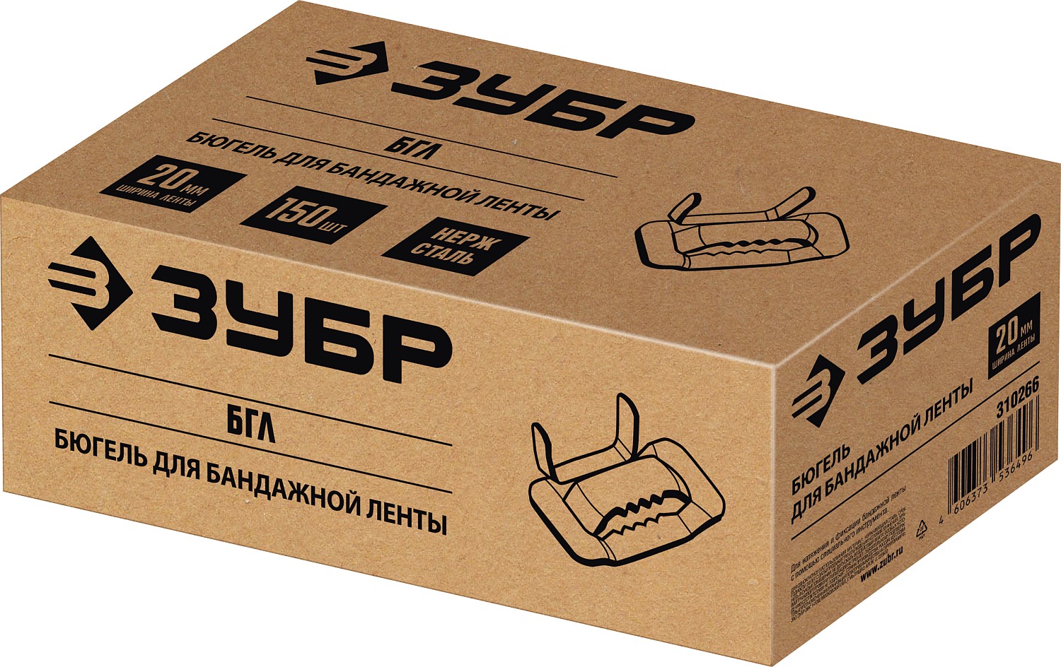 Бюгель - специальный крепеж для фиксации бандажной ленты. Создает хомутное соединение совместно с лентой, выполняя функцию замка. Бандажная лента используется для крепления указателей, знаков, вывесок и т.д.. Правильно подобранная лента обеспечит простоту монтажа и надежность крепления.