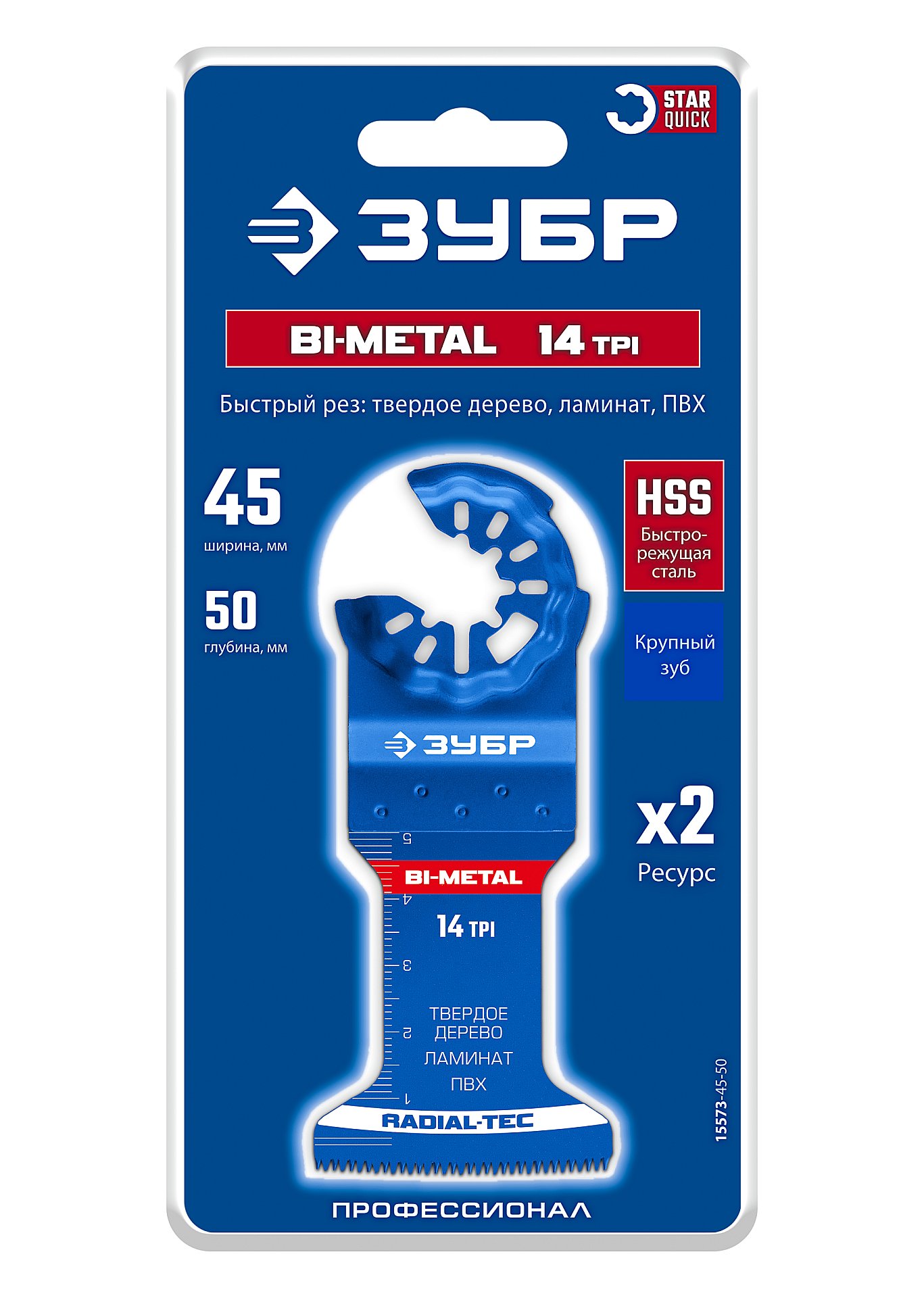 ЗУБР BIM 45x50 мм, 14TPI полотно биметаллическое, быстрый рез: твердое дерево, ламинат, ПВХ, StarQuick (15573-45-50)