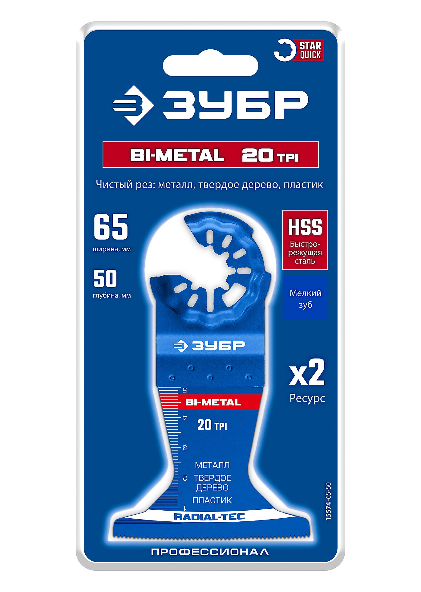 ЗУБР BIM 65x50 мм, 20TPI полотно биметаллическое, чистый рез: металл, твердое дерево, пластик, StarQuick (15574-65-50)