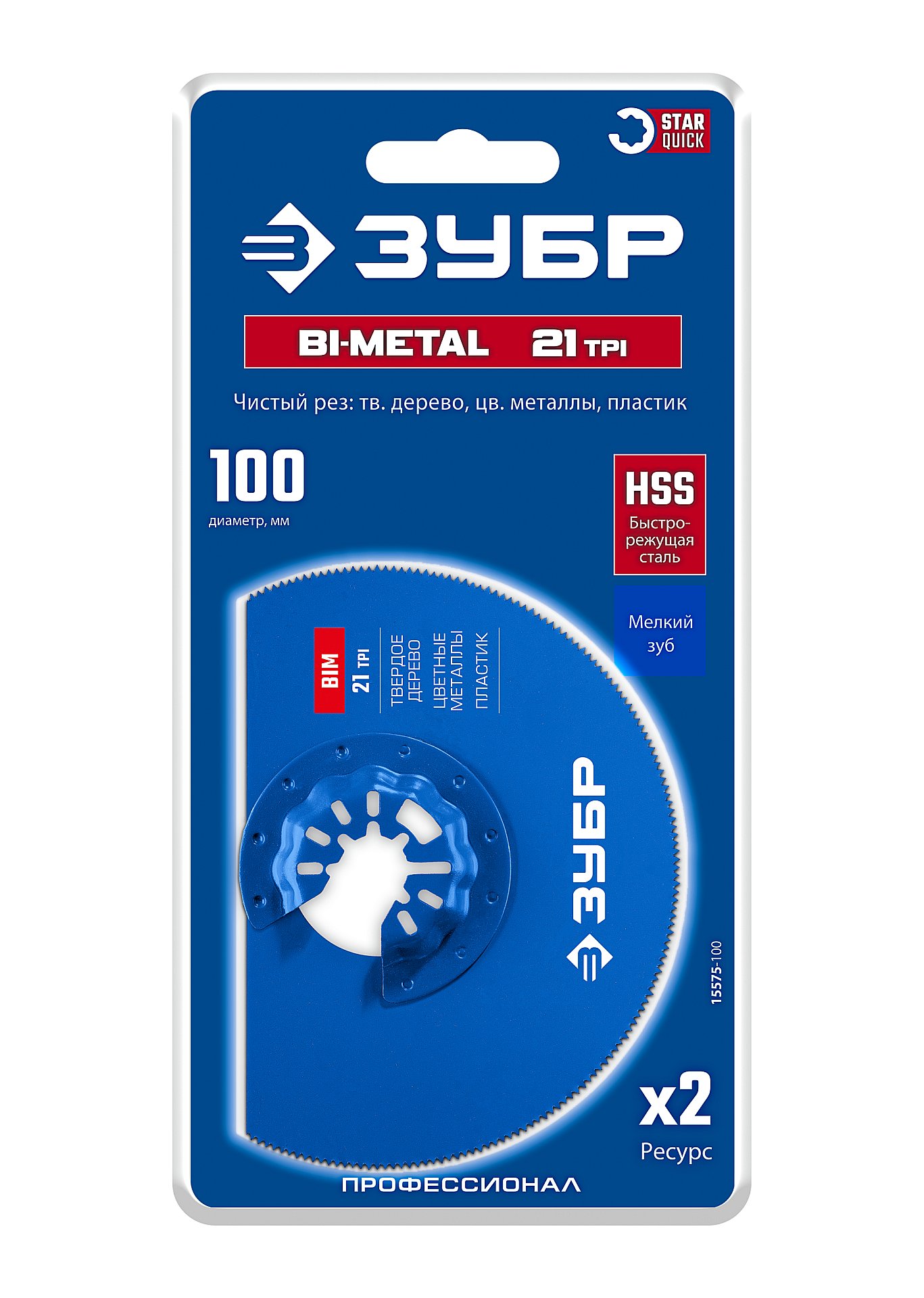 ЗУБР BIM d 100 мм, 21TPI полотно биметаллическое дисковое, чистый рез: твердое дерево, цветные металлы, пластик, StarQuick (15575-100)