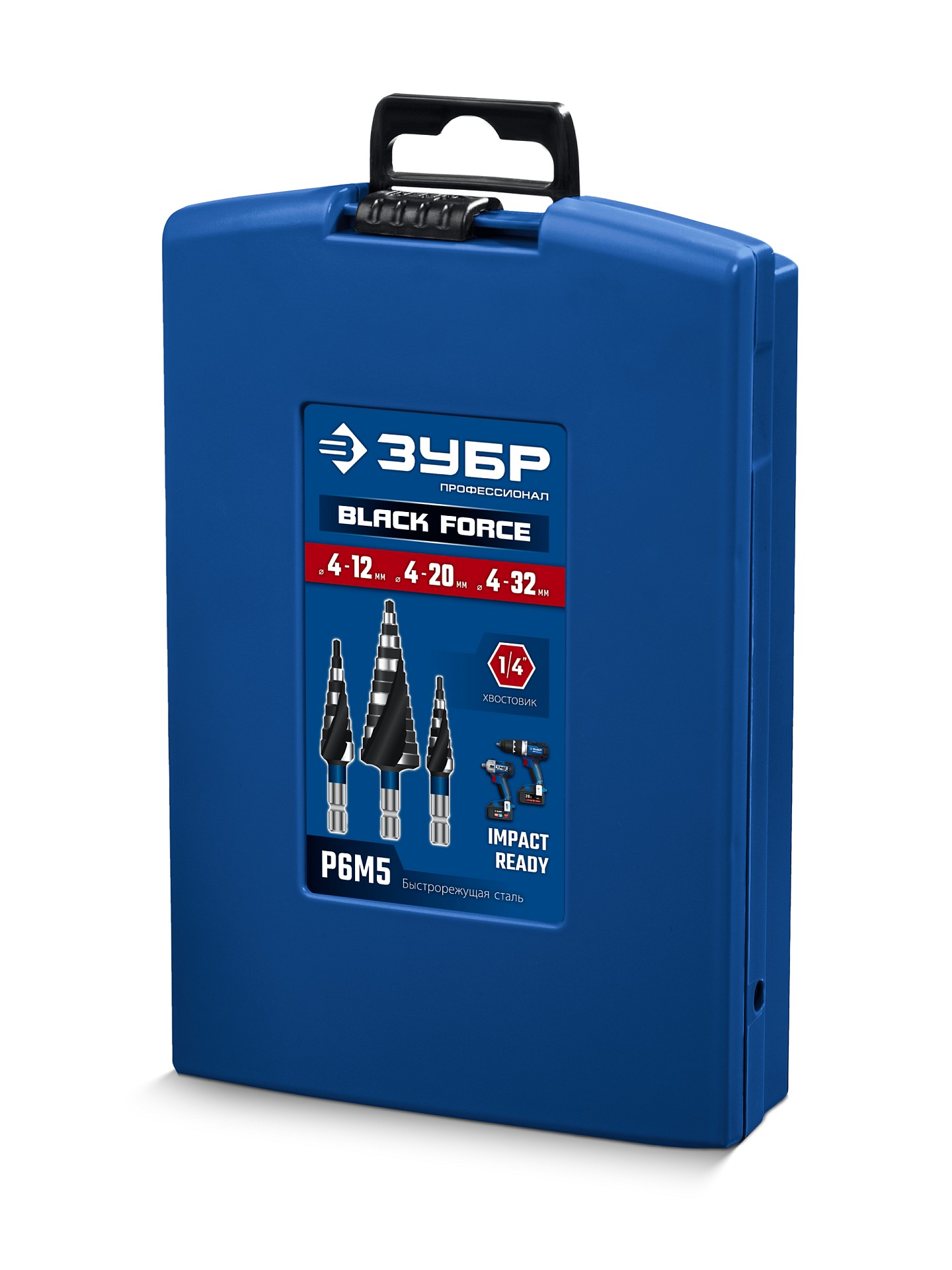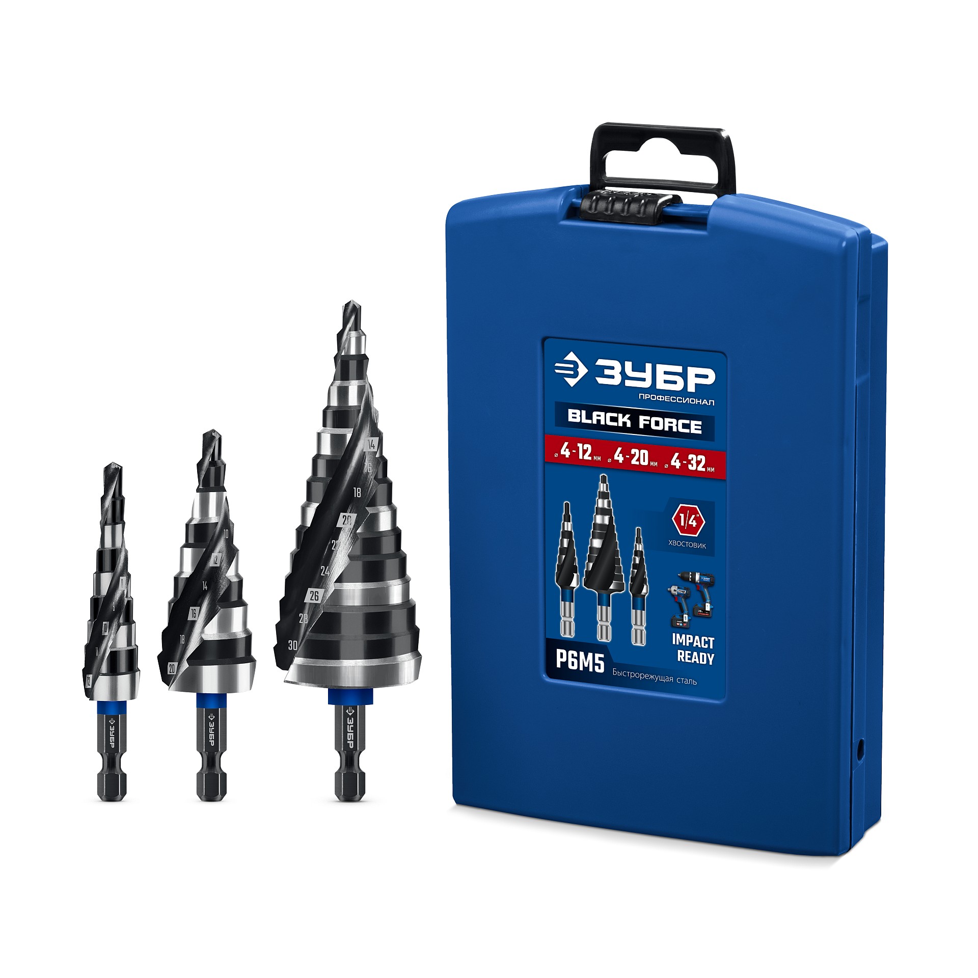 ЗУБР BLACK FORCE 3 шт., 4-32мм, винтовая проточка, набор ступенчатых сверл, ПРОФЕССИОНАЛ (29671-4-32-H3)
