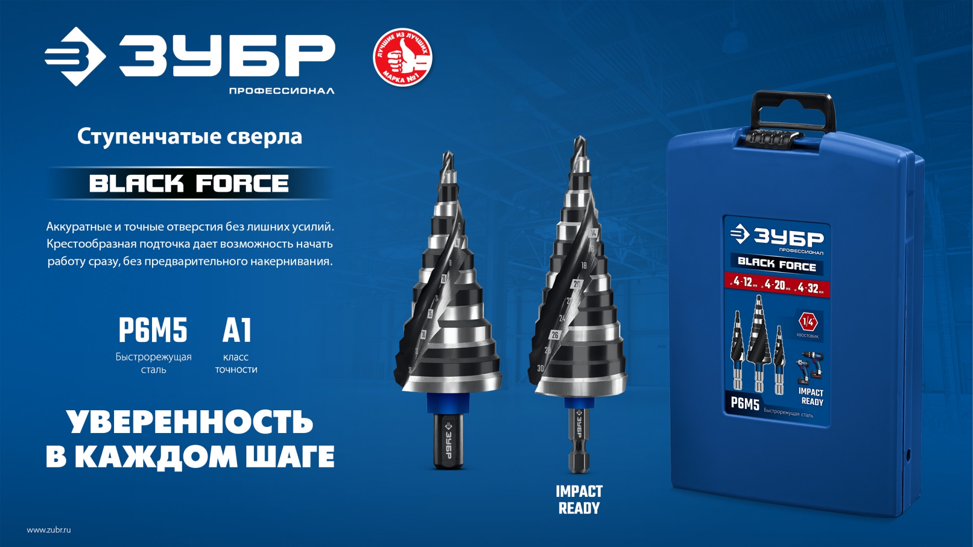ЗУБР BLACK FORCE 6-52мм, 12 ступеней, винтовая проточка, сверло ступенчатое, ПРОФЕССИОНАЛ (29671-6-52-12)