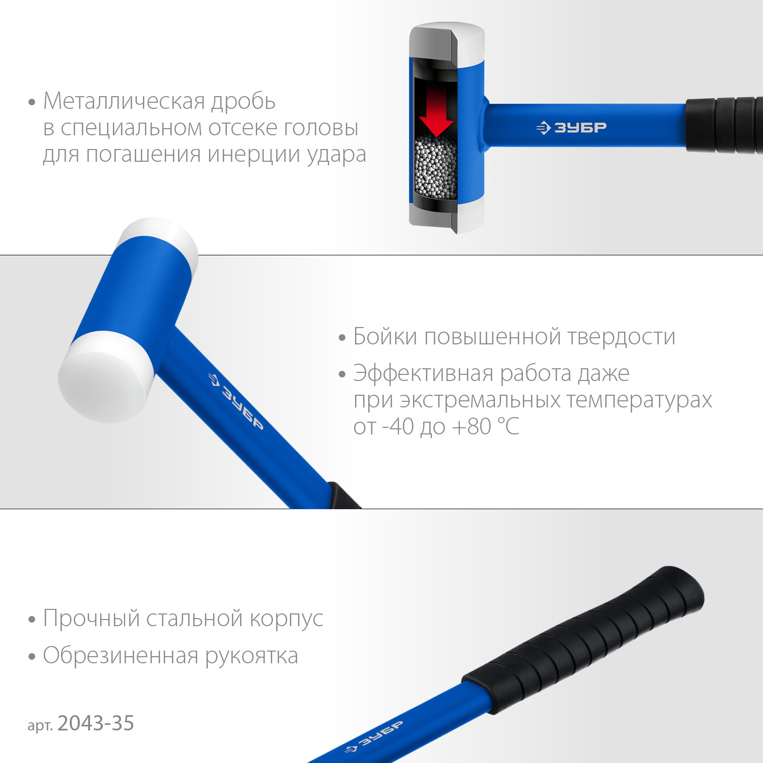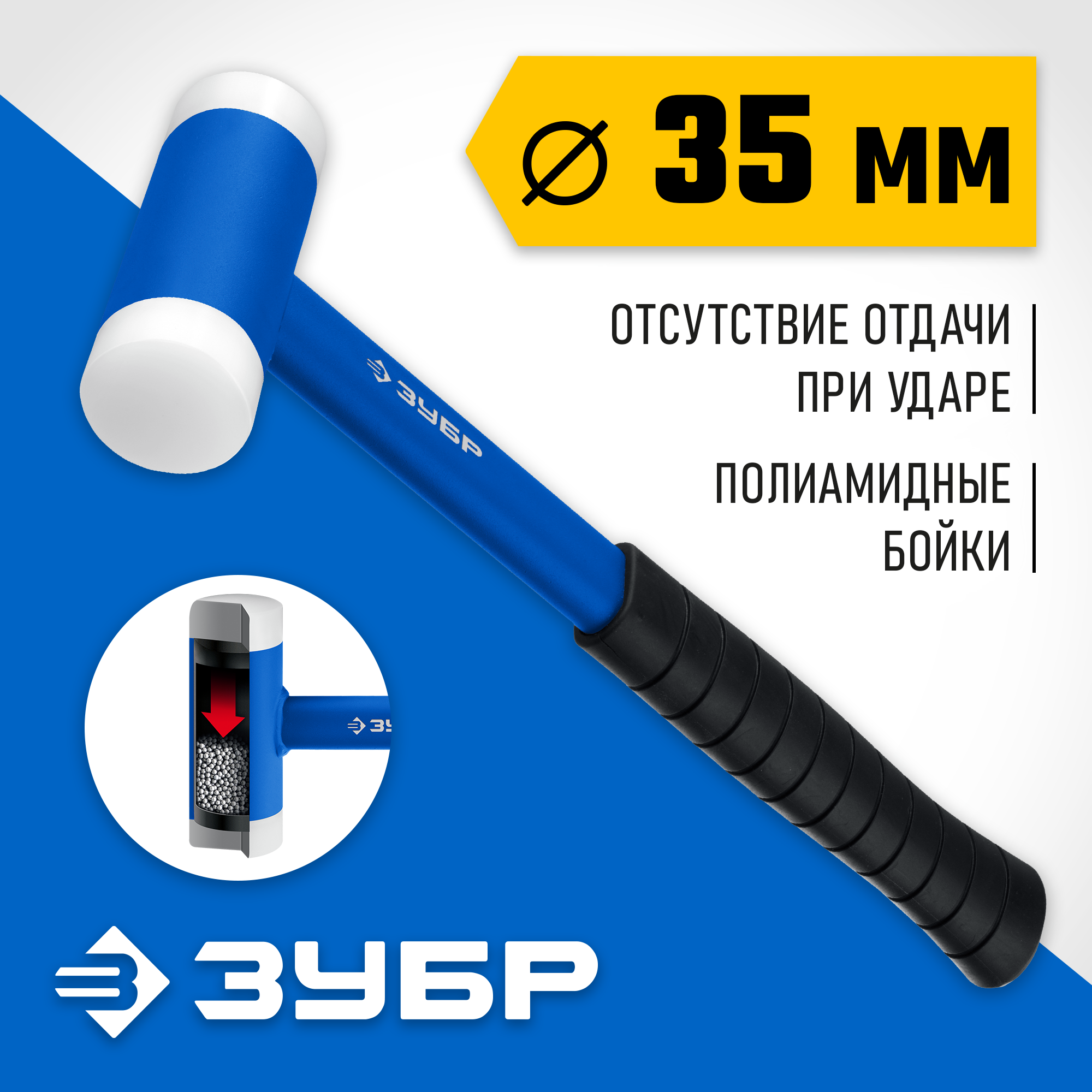 ЗУБР БМП-35, 35 мм, с полиамидными бойками, безынерционный молоток, Профессионал (2043-35)