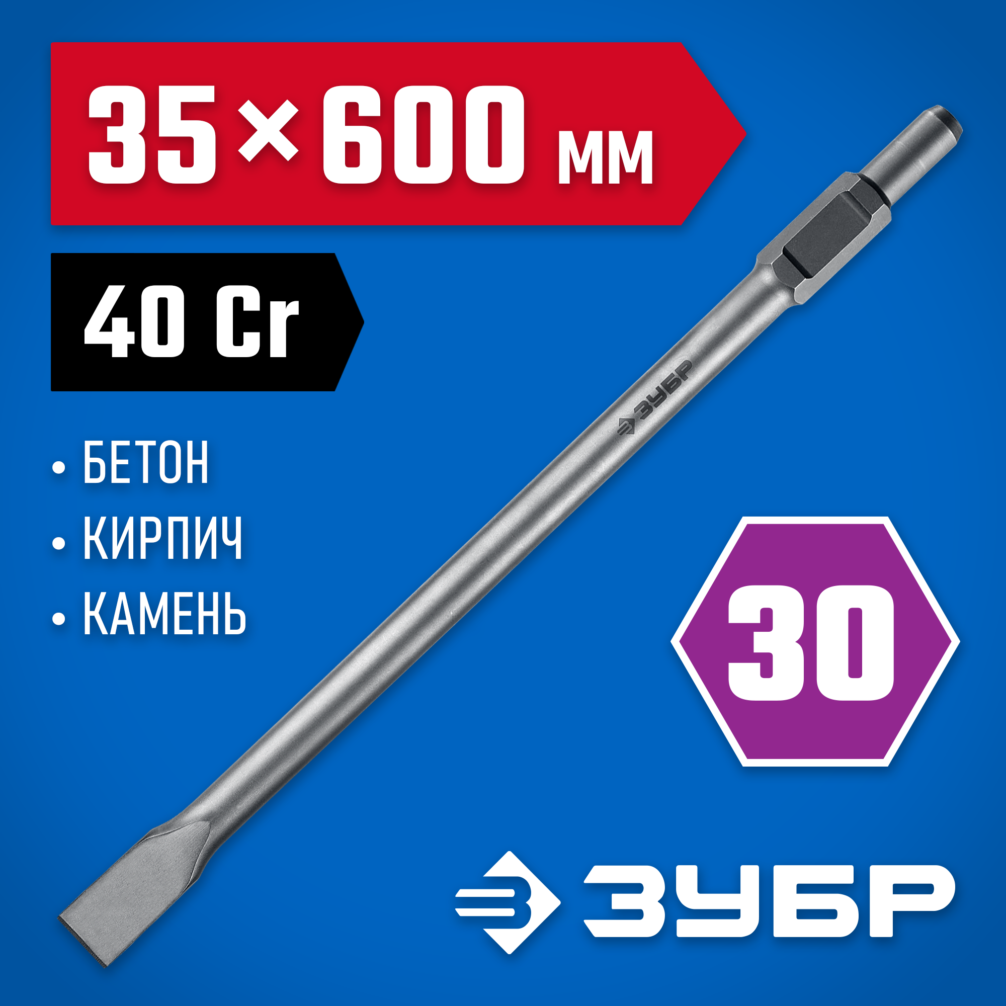 ЗУБР БУРАН, 35 х 600 мм, HEX 30, плоское зубило (29375-35-600)