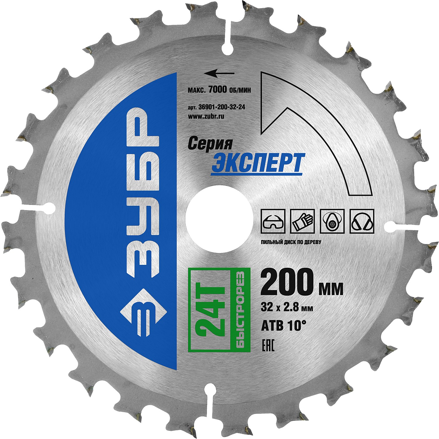ЗУБР Быстрорез, 200 x 32 мм, 24Т, пильный диск по дереву, Профессионал (36901-200-32-24)
