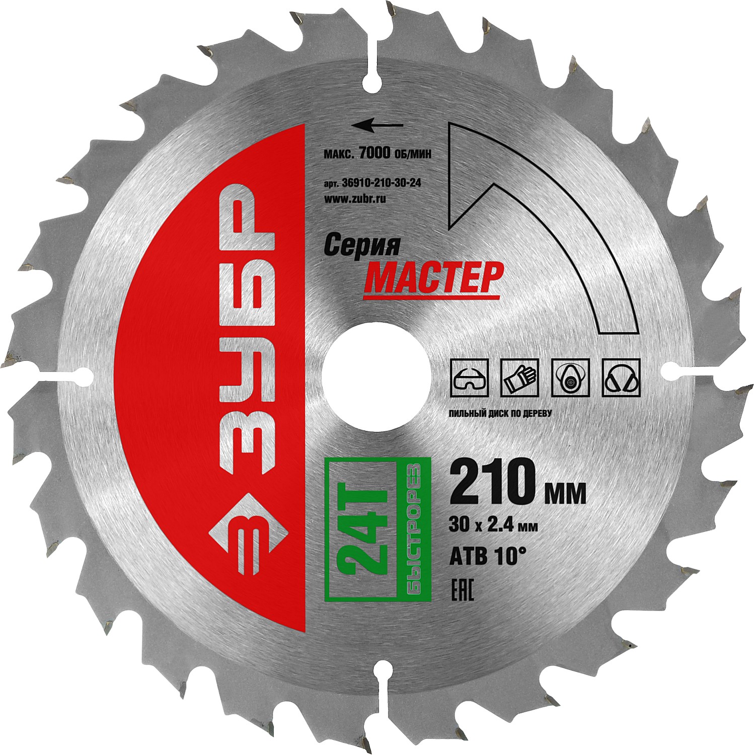 ЗУБР Быстрый рез 210 x 30мм 24Т, диск пильный по дереву