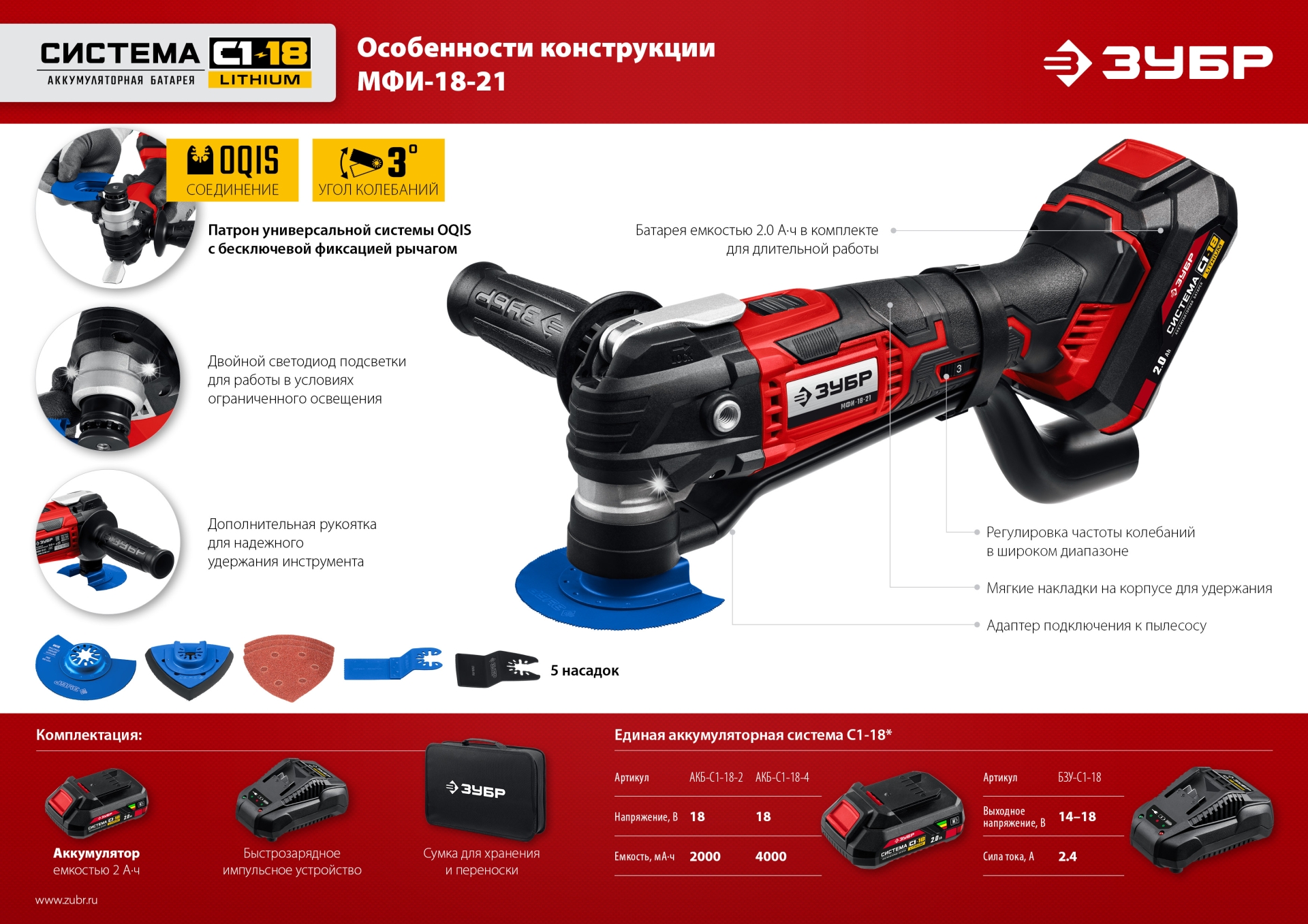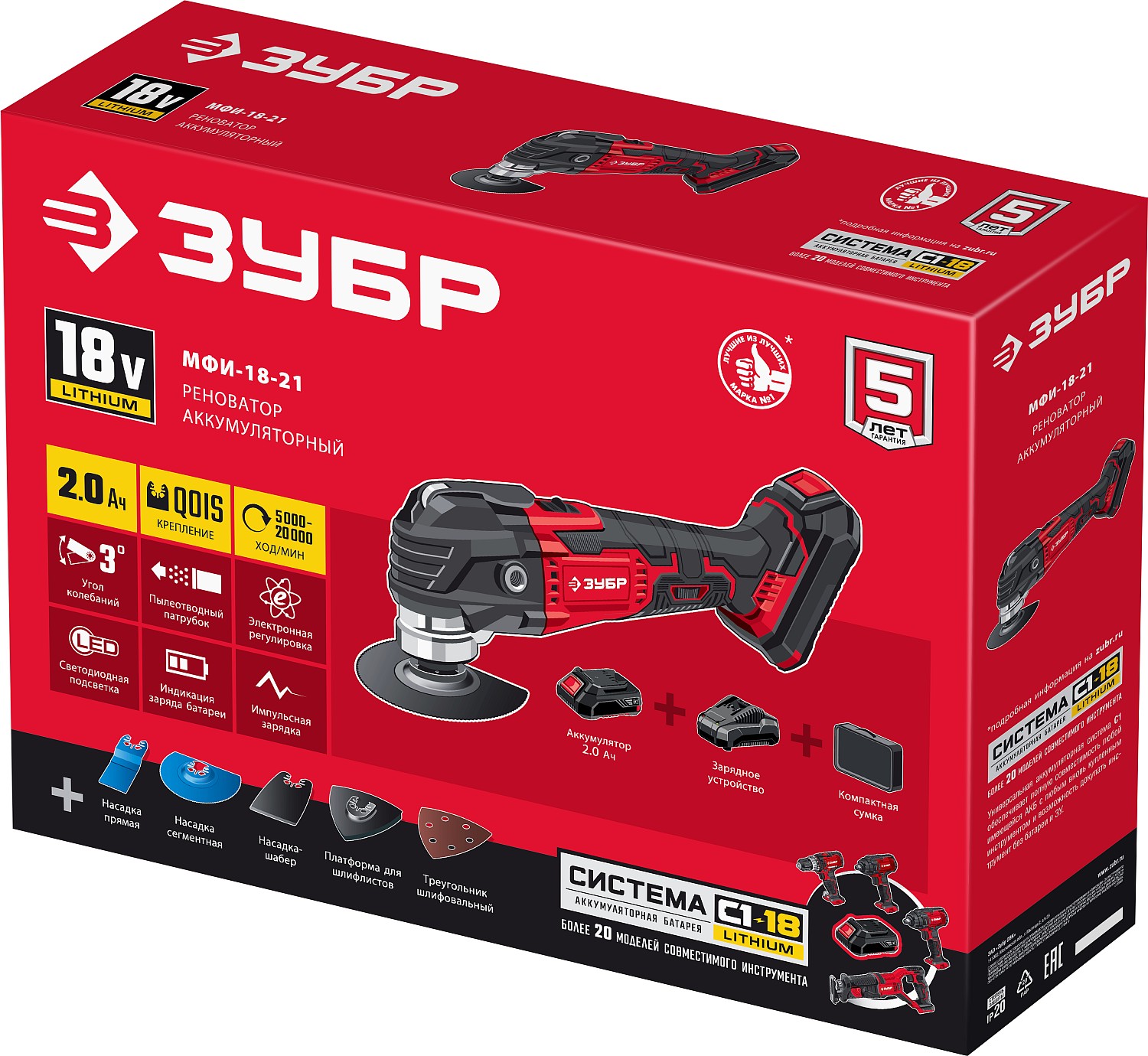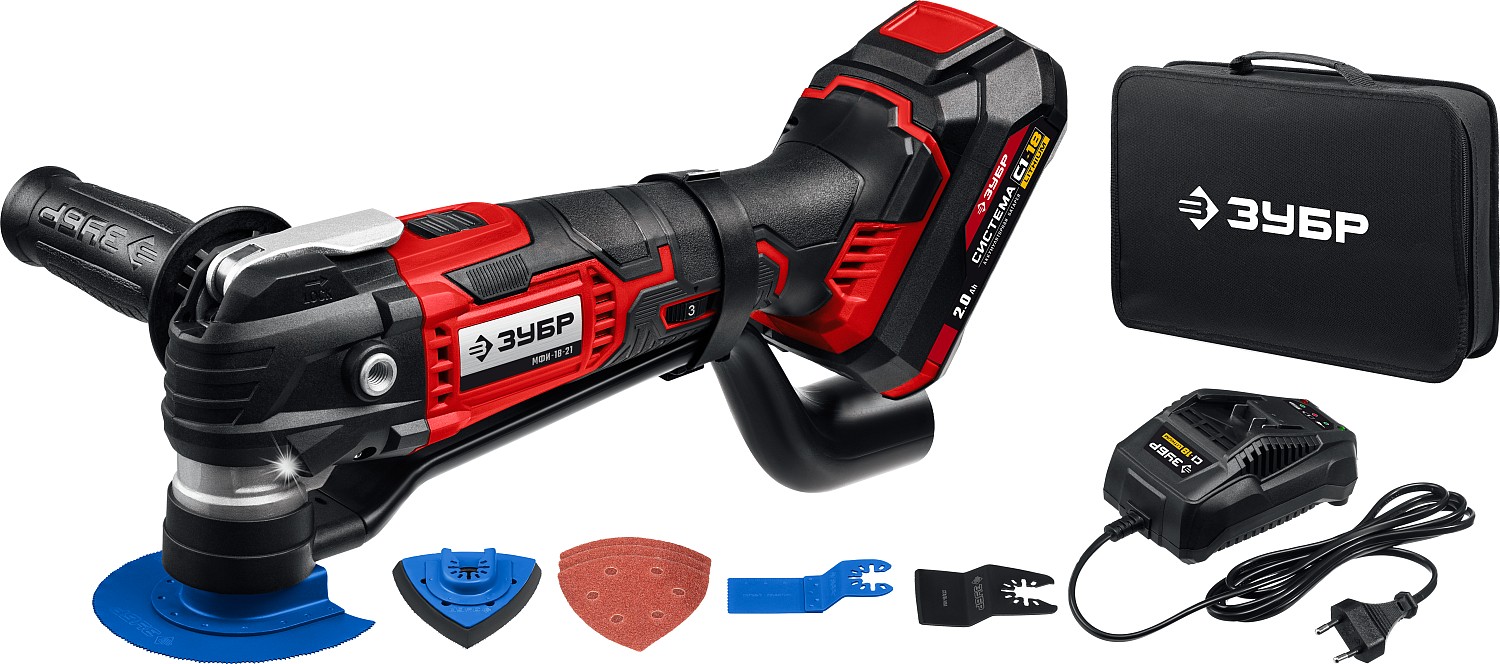 Реноватор аккумуляторный ЗУБР - универсальное устройство для разных строительных работ (резка, шлифование), особенно в труднодоступных местах и в отсутствие доступа к электричеству. Большой угол колебаний 3 градуса в сочетании с широким спектром регулировки частоты обеспечивают эффективную работу с любым материалом. Расширенная комплектация включает в себя базовый набор насадок для начала работы сразу после покупки и удобную сумку для хранения и переноски