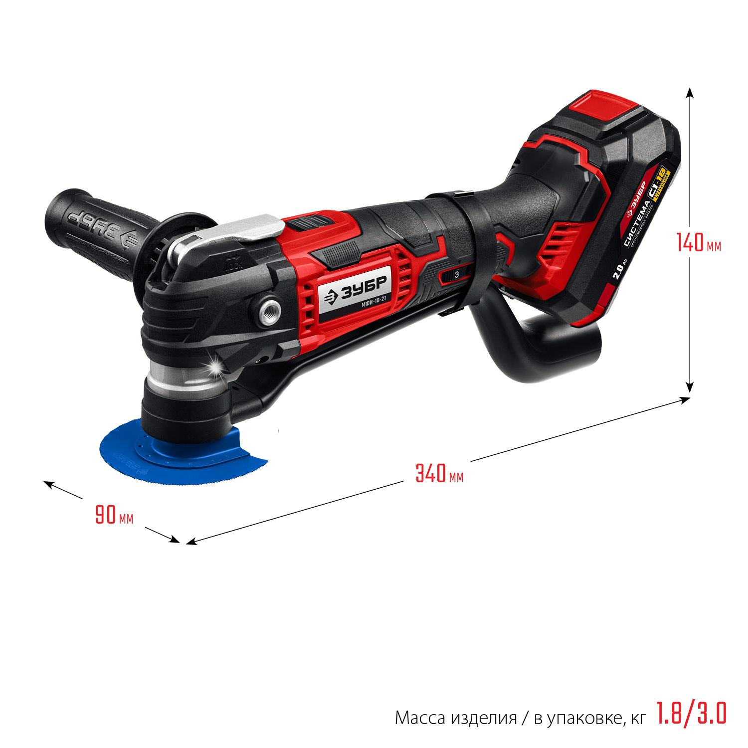 - Батарея емкостью 2.0 Ач в комплекте для длительной работы