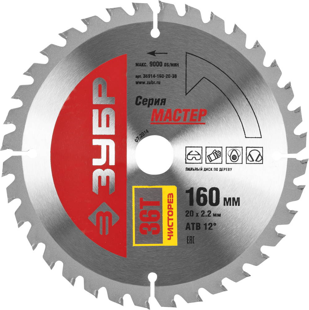 ЗУБР Чистый рез, 160 x 20 мм, 36Т, пильный диск по дереву (36914-160-20-36)