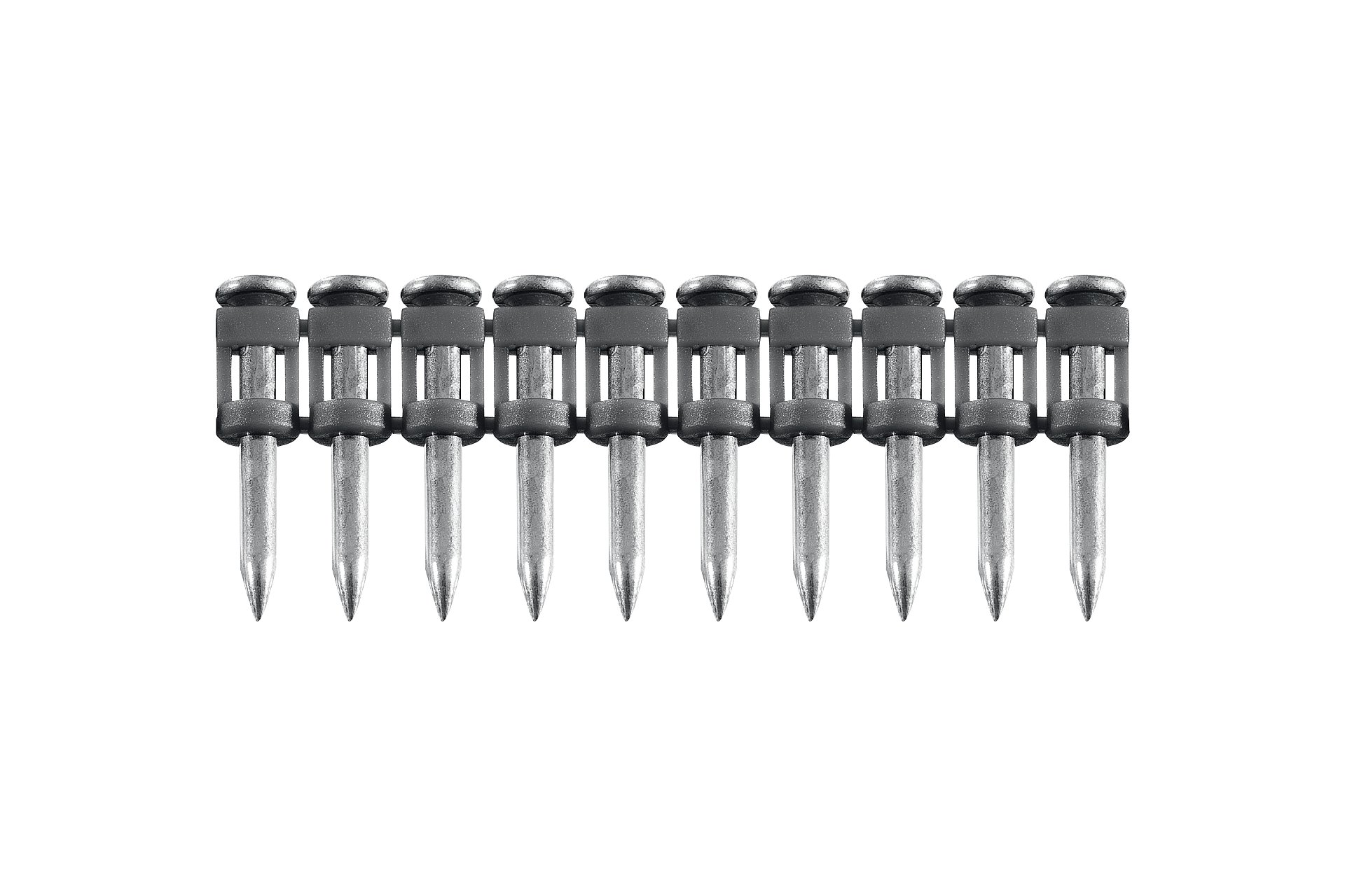 Гвозди по бетону соединены в кассету и забиваются при помощи газового или пневматического гвоздезабивного пистолета (нейлера). Необходимый размер гвоздя подбирается в зависимости от монтируемых материалов.