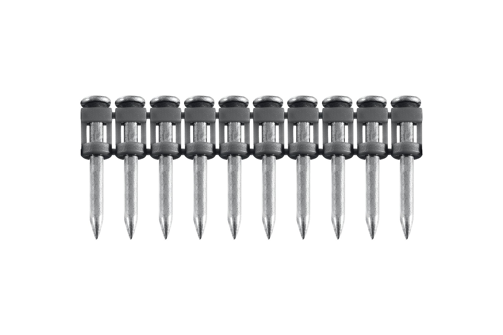 Гвозди по бетону соединены в кассету и забиваются при помощи газового или пневматического гвоздезабивного пистолета (нейлера). Необходимый размер гвоздя подбирается в зависимости от монтируемых материалов.