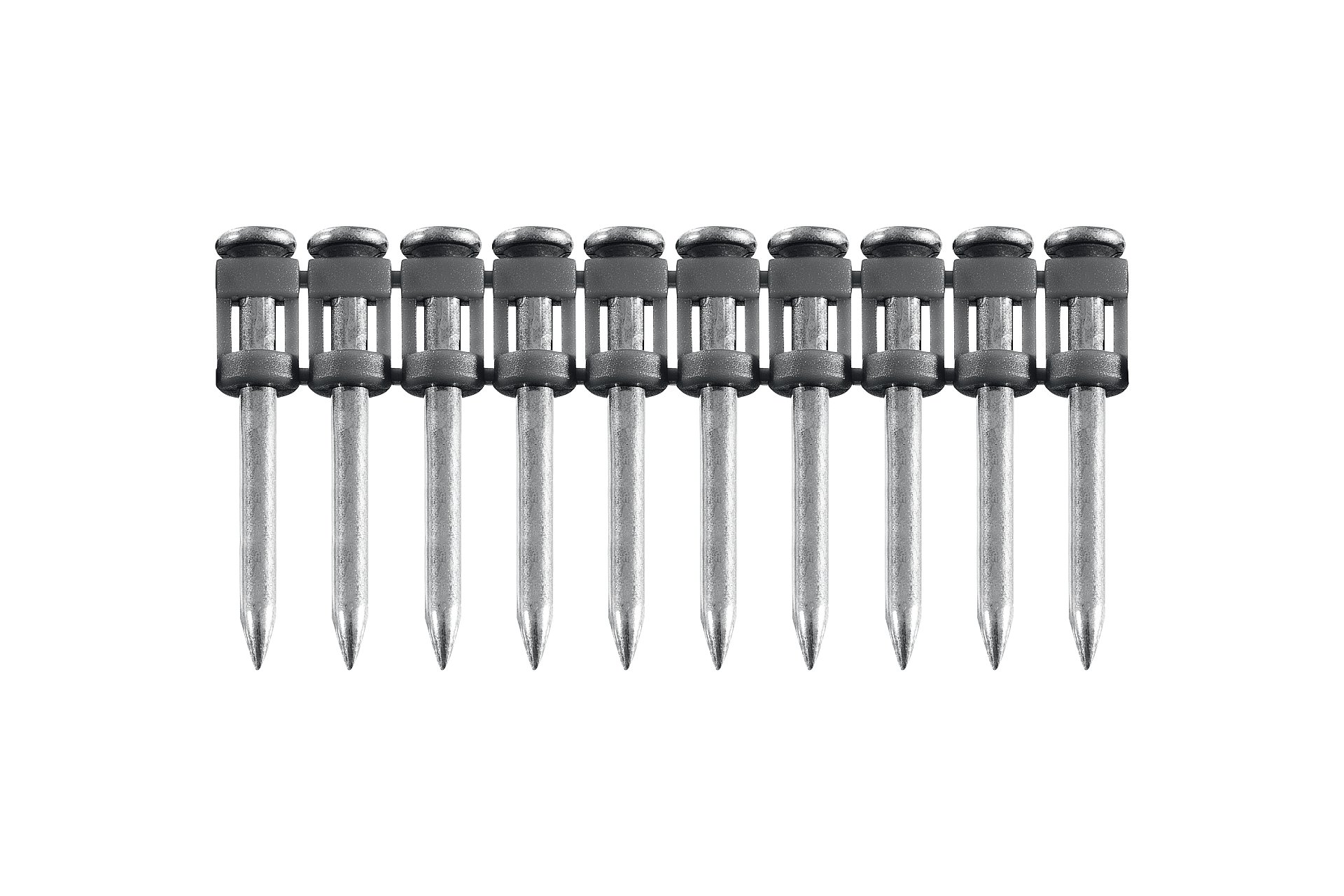 Гвозди по бетону соединены в кассету и забиваются при помощи газового или пневматического гвоздезабивного пистолета (нейлера). Необходимый размер гвоздя подбирается в зависимости от монтируемых материалов.