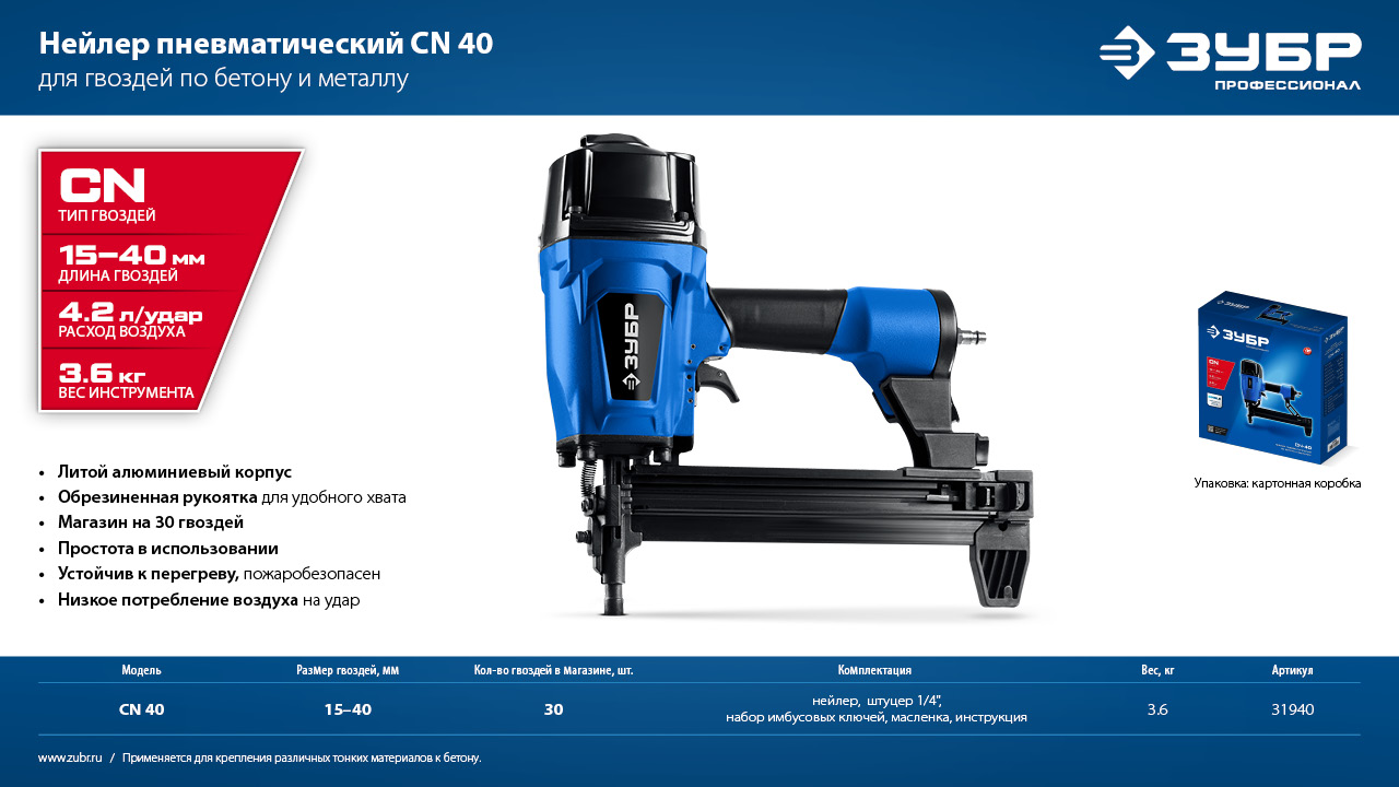 Профессиональный нейлер для крепления различных листовых материалов к бетону. Широкий диапазон применений.
