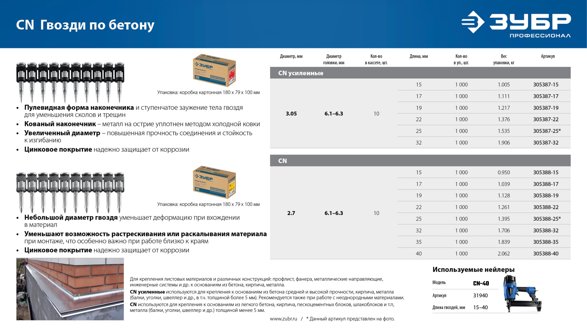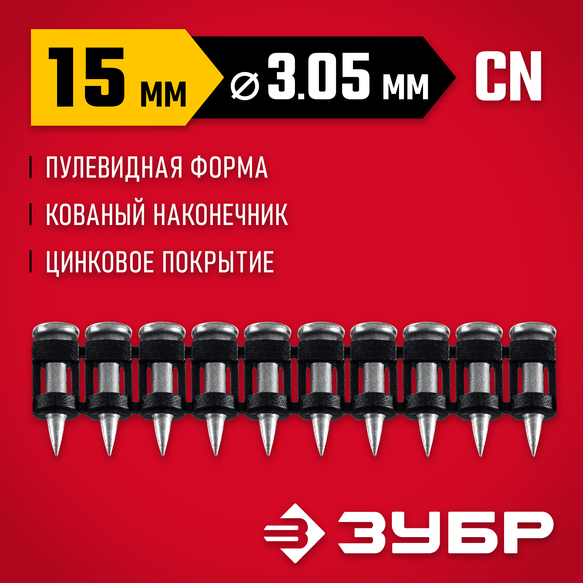 ЗУБР CN усиленные 15 х 3.05 мм, гвозди по бетону оцинкованные, 1000 шт (305387-15)